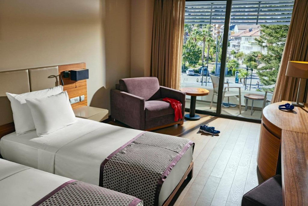 Хотелът разполага общо с 324 стаи, всички оборудвани с климатик, телевизор, телефон, сет за чай/кафе, баня с душ, сешоар, сейф (платен), интернет (платен), балкон. Почистване на стаите - всеки ден, смяна на спалното бельо и кърпите - 3 пъти в седмицата.