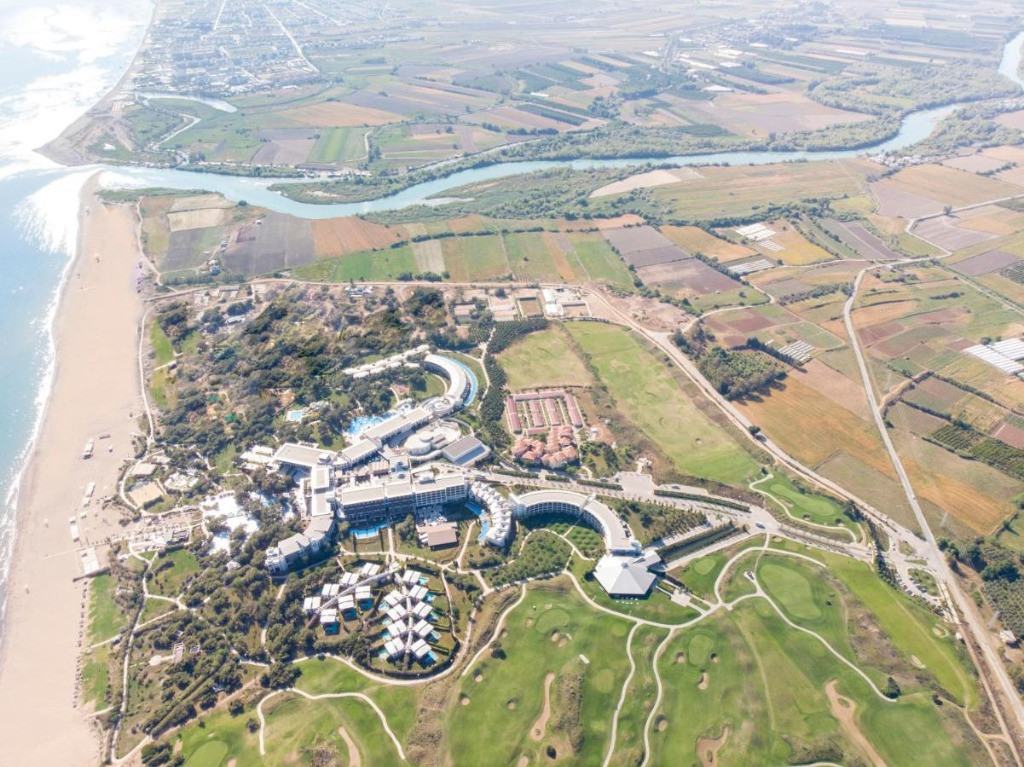 Хотелът се намира на 46 км. от международното летище в Анталия, на 54 км. от центъра на града, на брега на морето. Намира се в топ 100 на най-добрите GOLF хотели в света. Хотела е разположен на 1.000.000 m2, като 600 000 кв. м. са игрища за голф с гледка към плажната ивица.