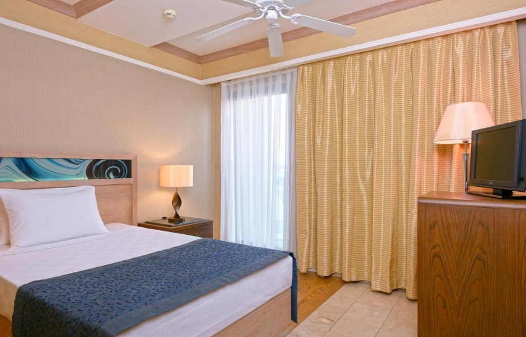 Основен ресторант, 3 а-ла-карт ресторанта (рибен, турски и италиански), 6 бара, външни басейни, японски басейн, вътрешен басейн, водни пързалки, СПА център, анимация, фитнес, турска баня, сауна, масажи, тенис корт, тенис на маса, водни спортове, пилатес, дартс, плажен волейбол, WI-FI, паркинг. За децата: мини клуб, мини диско, пяна парти, анимация. Плаж: собствен , пясъчен. Чадъри и шезлонги при басейна и плажа - безплатно.