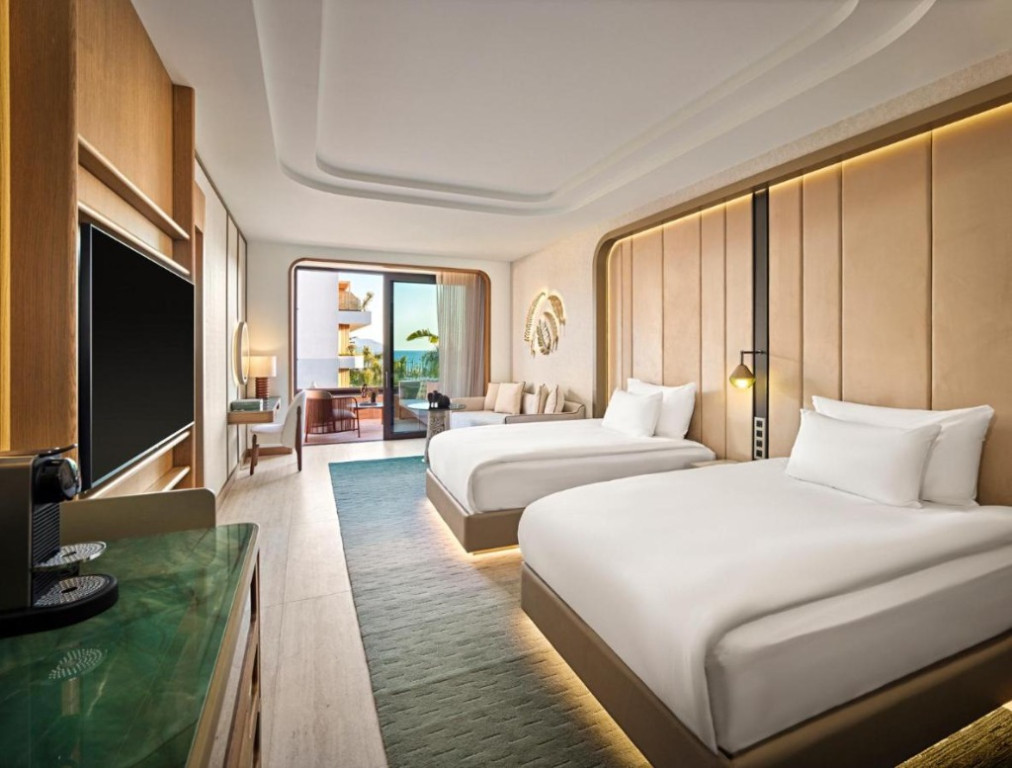 The resort : Резорт стаите са 147 Deluxe Room (48-54 m²), 62 Triple Room (55-60 m²), 35 Triple Comfort Room (55-60 m²), 10 Triple Swim-Up (62 m²), 66 Family Room (62-72 m²), 17 Family Comfort Room (63 m²), 25 Family Swim-Up (78 m²), 12 Big Family Room (90-100 m²), 4 Family Suite (96 m²), 4 Terrace Suite (110 m²), 19 Grand Family Suite (105-115 m²).