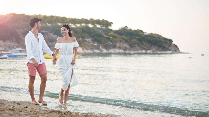 Собствен, пясъчен, разполга с кей на 5 минути от хотела. Чадъри, шезлонги и плажни кърпи на плажа и при басейна – безплатно.