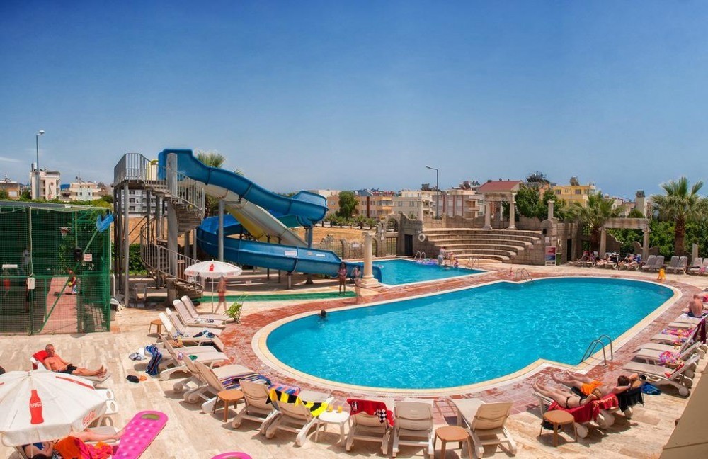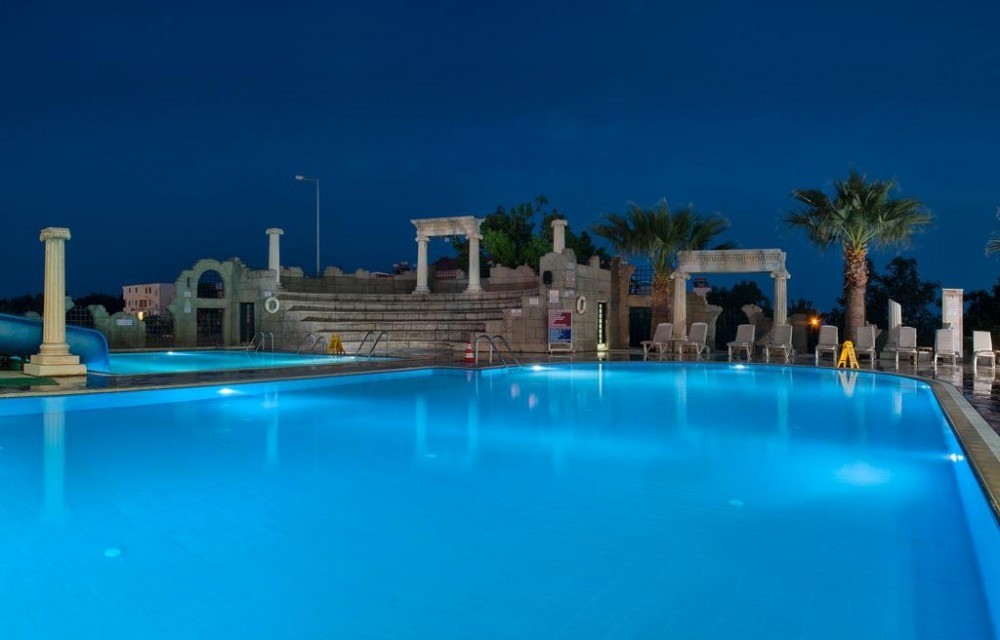 Основен ресторант, бар, 2 открити басейна, водни пързалки Безплатни услуги: турска баня, сауна, фитнес, баскетбол. Платени услуги: масаж, билярд, игрална зала, фризьор.