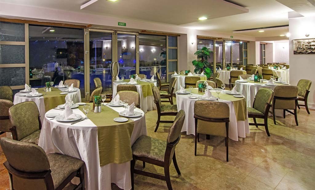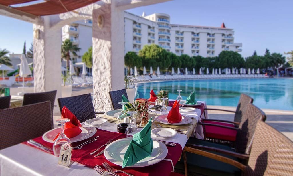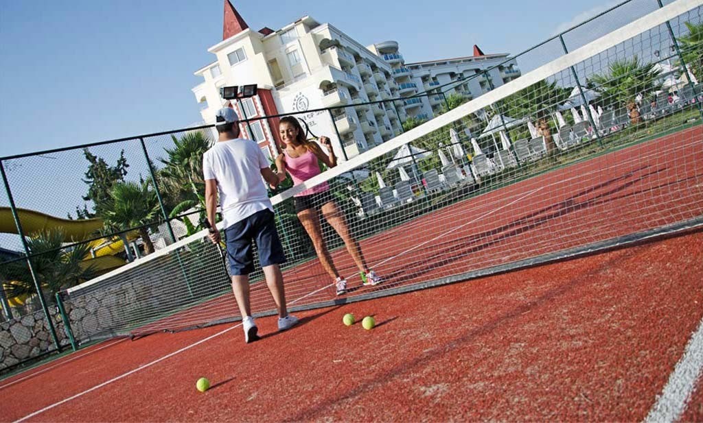 Основен ресторант, 2 а-ла-карт ресторанта, 4 бара, открит басейн, закрит басейн, водни пързалки, СПА център, конферентна зала, магазини, дискотека, паркинг. За децата: детски басейн, водни пързалки, детска площадка, мини клуб. Безплатни услуги: сауна, турска баня, фитнес, плажен волейбол, баскетбол, дартс, тенис корт, тенис на маса, аеробика, Wi-Fi интернет в лоби. Платени услуги: масаж, фризьор, бар на плажа, лекар, детегледачка, водни спортове.