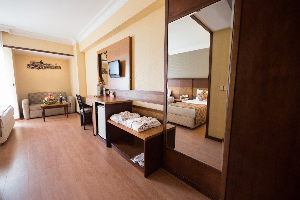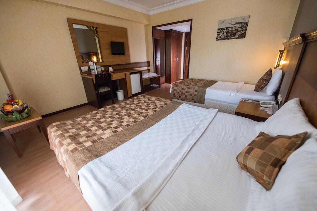 Хотелът разполага с общо 246 стаи, от които 239 стандартни, 17 свързани стаи и 2 суита. Всички стаи са оборудвани с климатик, телевизор, телефон, баня с душ/вана, сешоар, мини бар (платен), сейф (платен). Почистване на стаите - всеки ден, смяна на спалното бельо и кърпите - 2 пъти в седмицата.