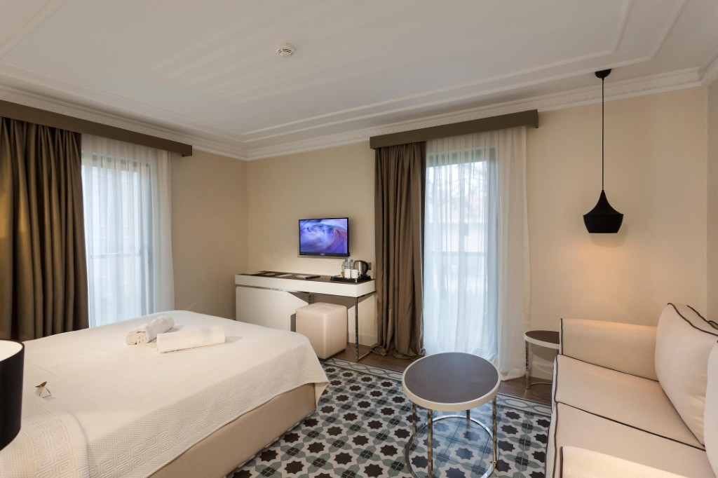 Хотелът разполага с 307 стаи, от които 83 стандартни (24 м2), 143 фамилни стаи (32-37 м2), 7 суита и 3 стаи за инвалиди (24 м2) . Всички стаи са оборудвани с климатик, телевизор, телефон, баня с душ/вана, сешоар, мини бар (платен, всеки ден се зарежда безплатно с вода), сет за кафе/чай, сейф (безплатен), балкон или тераса. Почистване на стаите - всеки ден, смяна на кърпите - всеки ден, смяна на спалното бельо - 3 пъти в седмицата.