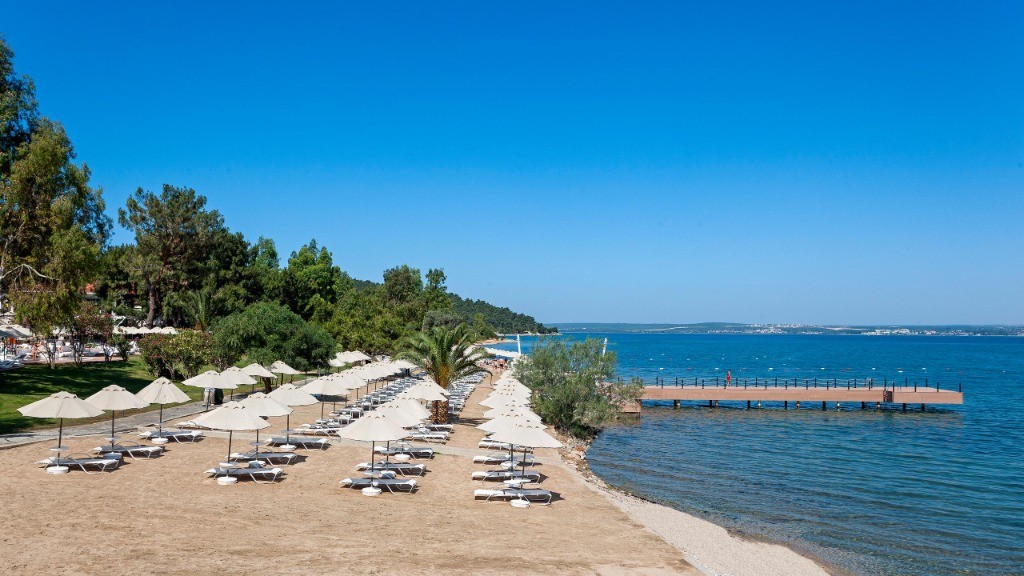 Плаж: собствен, пясъчно-чакълест. Чадъри, шезлонги и плажни кърпи на плажа и при басейна - безплатно.