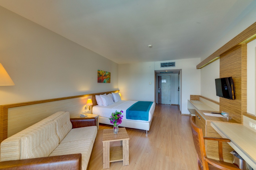 Хотелът се състои от 2 сгради, основна и бутикова. Разполага с общо 299 стаи - стандартни (22-25 кв.м) и супериор (45-50 кв.м). Всяка една е оборудвана с: климатик, телевизор, телефон, мини бар (безплатен с включена вода и безалкохолни напитки, зареждане на вода всеки ден), сейф (безплатно), баня с душ, сешоар, балкон/ френски балкон, WI-FI (безплатен). Почистване на стаите – всеки ден, смяна на спалното бельо – на всеки 3 дни.