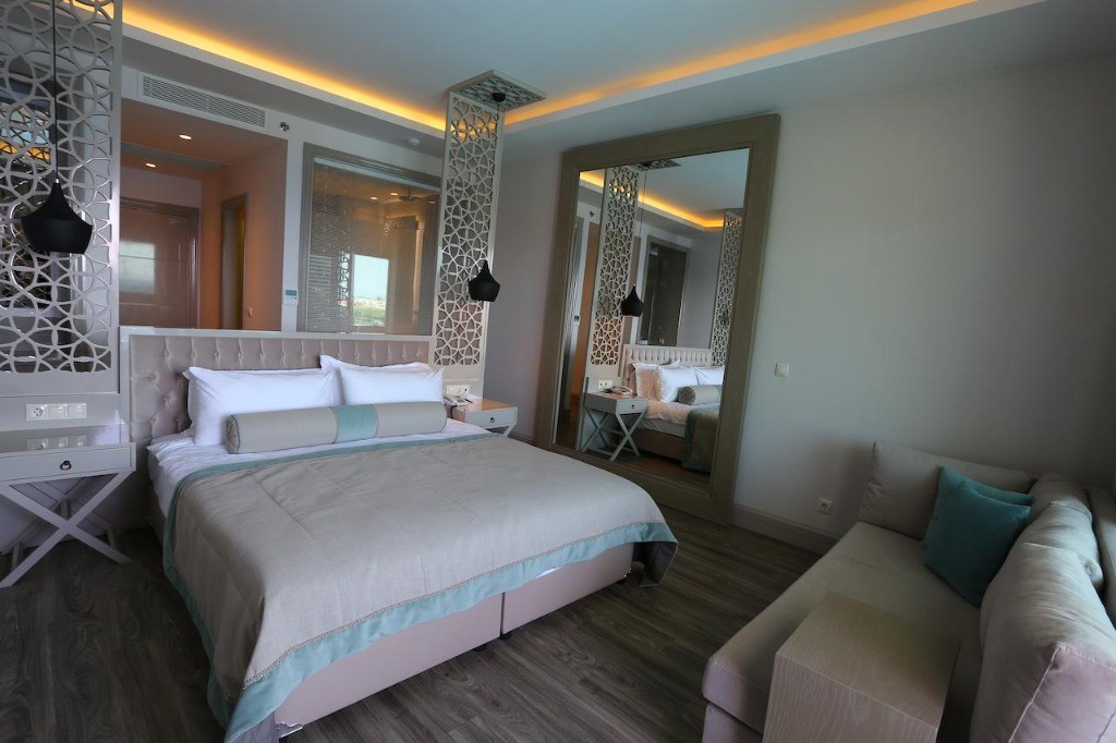 Основен ресторант, 3 а-ла-карт ресторанта (турски, италиански, рибен, с предварителна резервация и доплащане 10 евро / човек), 6 бара (2 при басейна, на плажа, лоби, лаундж, диско), сладкарница, чаена градина, 3 открити басейна, 4 пързалки, 2 закрити басейна закрит (с джакузи - отопляем, а другия - за деца), 24-часова рецепция, паркинг.