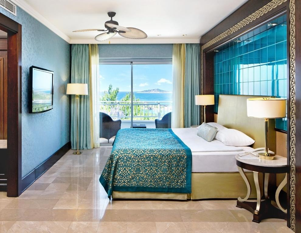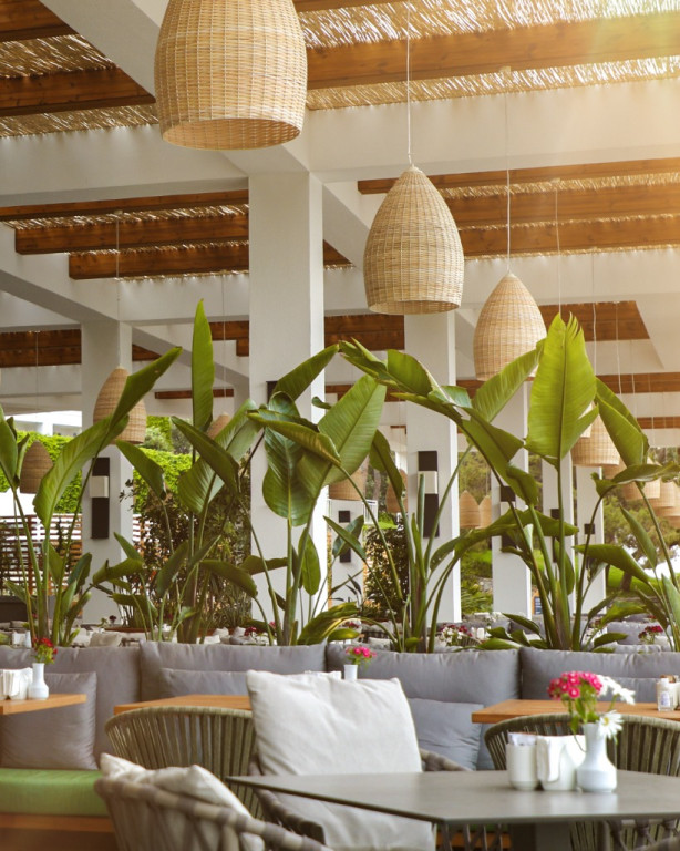 Хотелът се състои от една основна сграда с 3 асансьора и 42 къщички сред разкошна маслинова градина. Някои от маслиновите дървета в градината са на над 200 г. Хотелът разполага общо с 273 стаи от които 121 Делукс стаи с гледка градина или море (42 кв.м), 65 Премиум стаи с гледка море (52 кв.м), 74 Суита с гледка градина (Стандартни, Фамилни и Супериор, 54-72-93 кв.м) и 11 Вили с гледка море, частен иконом и безплатен частен летищен трансфер за престой от минимум 7 нощувки (Панорама 400 м2, Супериор 600 м2 и Диамант 800 м2). Всички стаи са оборудвани с: климатик, телевизор, телефон, баня с душ/вана, сешоар, чехли и халати за баня, мини бар (безплатен, ежедневно зареждане с вода, безалкохолни напитки и бира), сейф, сет за кафе и чай, балкон, Wi-Fi (безплатен). Почистване на стаите - всеки ден, смяна на спалното бельо и кърпите – 3 пъти в седмицата.