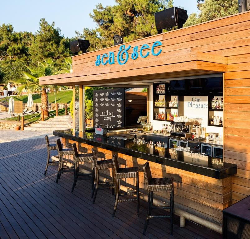 Основен ресторант A La Minute/Turquoise, 3 а-ла-карт ресторанта с предварителна резервация, работното време на ресторантите зависи от метеорологичните условия и заетостта на хотела, предлагат dinner service в периода 20.05-15.09 (рибен Kalamata, италиански L`olivo, азиатски Umi Teppanyaki 1 снек ресторант, 1 ресторант за гости на вилите Cleopatra, 8 бара ( 24-часов лоби бар, бар на плажа, бар при басейна, нощен бар, пиер бар, арт бар, нощен клуб, винен бар с/у доп. заплащане) 1 сладкарница, Street food щандове, детски ресторант в Rixy Kids Club, основен открит басейн и 1 полузакрит басейн, Rixy аквапарк, водни пълзалки, магазини, СПА център Anjana, фитнес, козметичен салон, фризьорски салон, център за красота, 6 конферентни зали, магазини, паркинг, 24-часова рецепция.