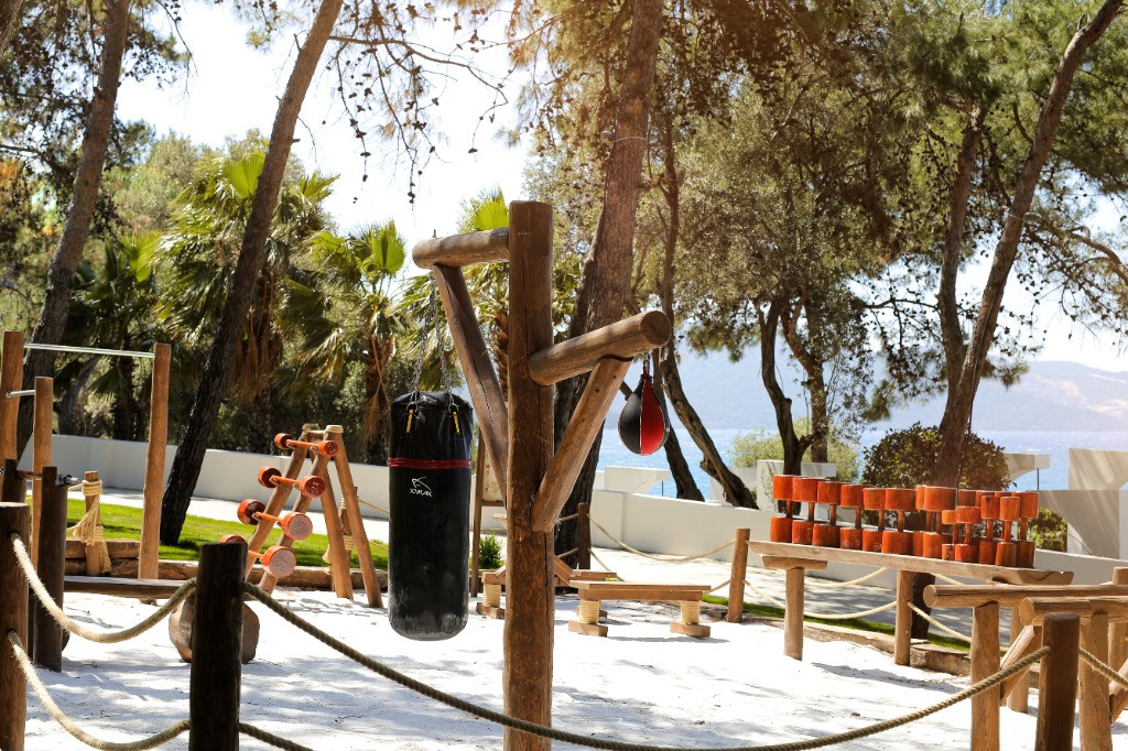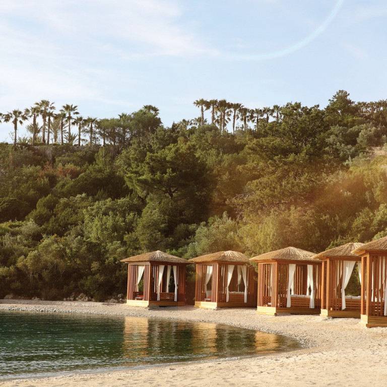 Собствен, пясъчен плаж със Син флаг и дължина от 200 м и платформа 500 м2 - чадъри, шезлонги и матраци на плажа и при басейна – безплатно, плажни кърпи – срещу депозит. Частна платформа само за гости на вилите 80 м2. И двете платформи са Adults Only. Кабани на плажа срещу доп. заплащане.