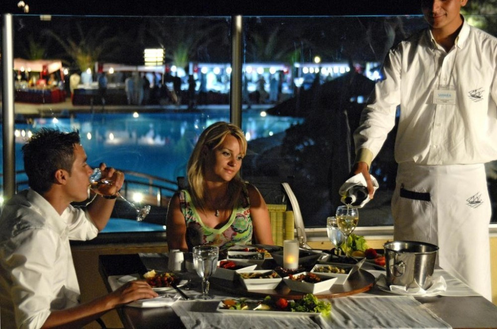 All Inclusive - закуска, обяд, вечеря и междинни хранения на шведска маса; алкохолни и безалкохолни напитки местно производство и някои вносни - без лимит (съгласно концепцията на хотела). 24-часов бар.