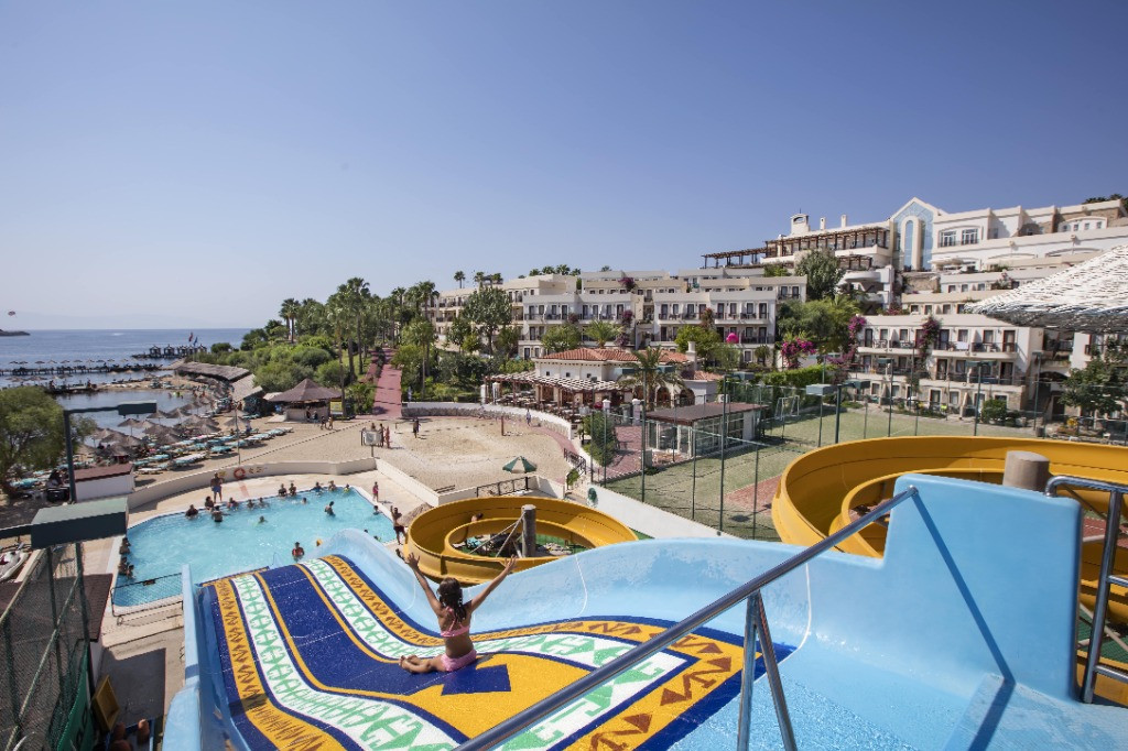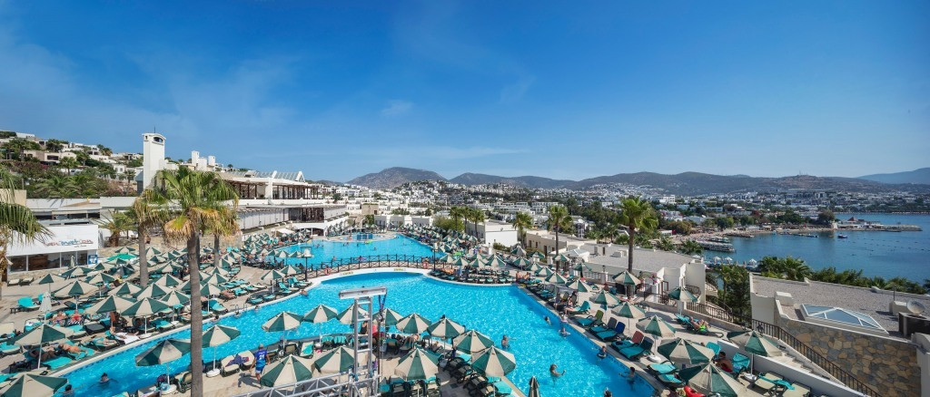 Хотелът е разположен на 35 км. от летище Милас, на 4 км. от центъра на Бодрум, в района на Гюмбет, на брега на морето. Построен е през 1999 г., с обща площ 38 000 м2, последно реновиран през 2014 г.