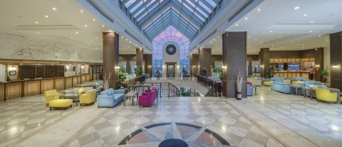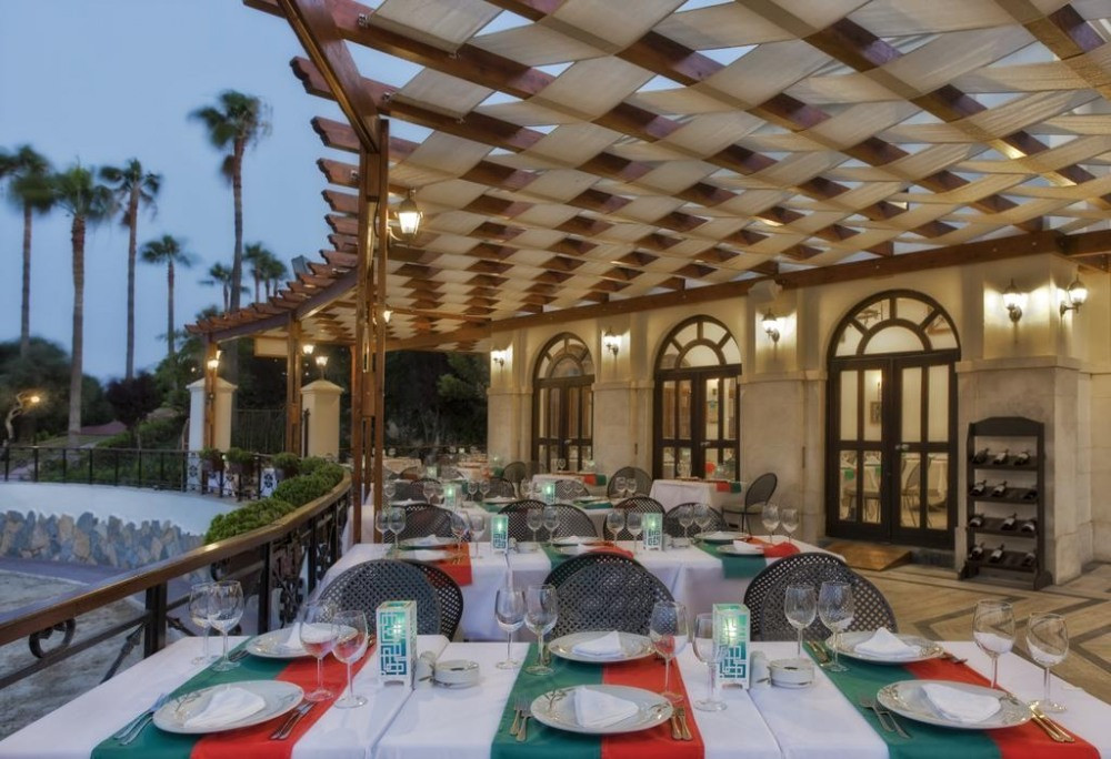 Хотелът разполага с основен ресторант Амадеус, 3 а-ла-карт ресторанта (с предварителна резервация; турски Сини, средиземноморски Санджак и италиански Ла Гондола - изискват се минимум 5 нощувки престой, за да има 1 безплатно посещение на а-ла-карт ресторант), 7 бара (бар при басейна, бар на плажа, бар при мелницата, релакс бар, витамин бар, диско бар, лоби бар), дискотека, открит басейн с големина 1,000 м2, закрит басейн, релакс басейн, 2 водни пързалки, СПА център, паркинг, 24-часова рецепция, конферетни зали, мини маркет, магазини.