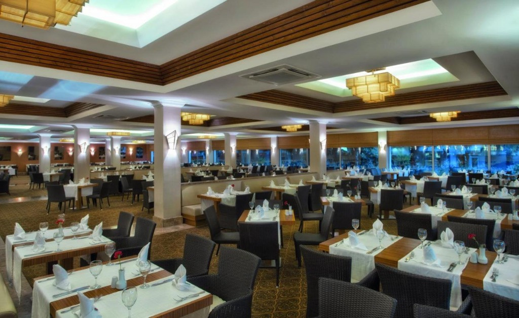 Основен ресторант, диетично меню, 2 а - ла - карт ресторанта (италиански и рибен, с пердварителна резервация, платено), 3 бара, 4 басейна, 2 водни пързалки, лекарски кабинет, SPA - център, Thalasso & Wellness център, фризьорски салон, пералня, магазини, 3 конферентни зали ( за 160-350 души) За децата: детски басейн, детски пързалки, детска площадка, мини - клуб (4-12 години), детегледачка (платено), анимация Безплатни услуги: джакузи, фитнес, аеробика, водна гимнастика, плажен волейбол, тенис на маса, дартс, 2 тенис корта с твърда настилки, кану, безмоторни видове спорт, музика на живо (в определени дни), анимационна програма, дискотека, интернет – безжичен (в лобито) Платени услуги: турска баня, сауна, масаж, билярд, осветление на тенис корт, уроци по тенис, Интернет кафе, курсове по гмуркане, моторни видове спорт. Плаж: собствен, пясък и чакъл. Кей, оборудван с шезлонги и матраци. На плажа: чадъри, шезлонги, матраци - безплатно. На басейна: чадъри, шезлонги, матраци - безплатно. Плажни хавлии: срещу карта за плажни хавлии.