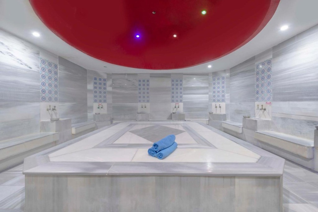 Основен ресторант, а-ла-карт ресторанта (рибен), 4 бара, дискотека, 4 октрити басейна, 2 водни пързалки, СПА център, 2 конферентни зали. Безплатни услуги: Сауна, турска баня, фитнес. Платени услеги: Масажи, пилинг, билярд, водни спортове, WiFi интернет За децата: детски басейна, мини клуб (4-11г.), тийн клуб (12-16г.), мини диско. Плаж: собствен, пясъчно-чакълест. Чадъри и шезлонги при басейна и плажа - безплатни.