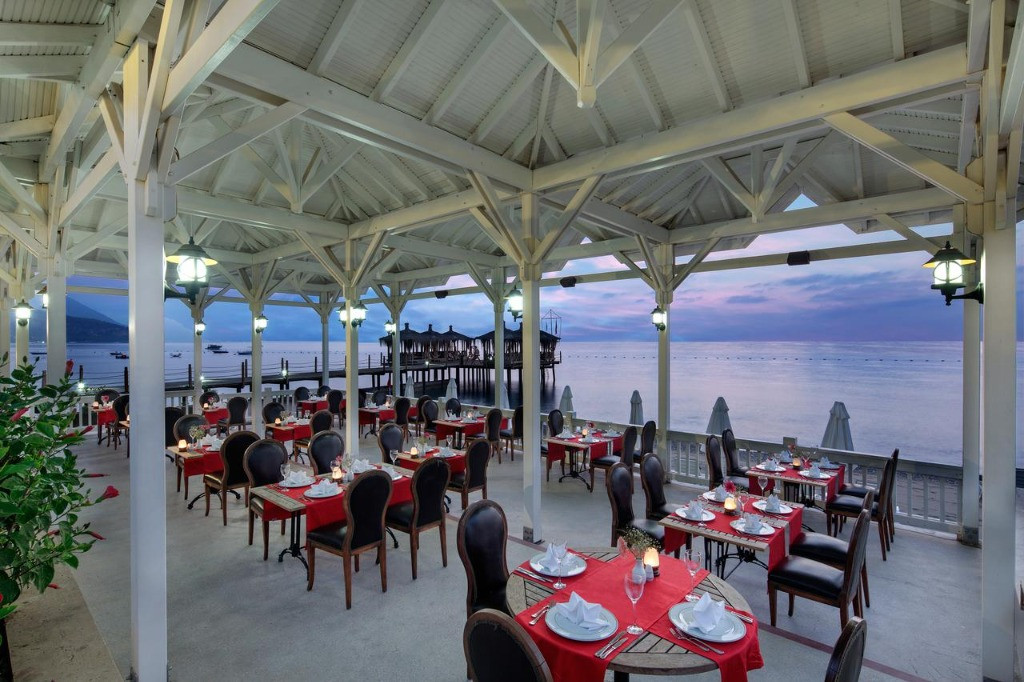 Основен ресторант, 5 а-ла-карт ресторанта(мексикански, с морски специалитети, далекоизточен, средиземноморски, барбекю), 5 бара, 3 открити басейна, 2 водни пързалки, фризьорски салон, магазини, пералня, химическо чистене За децата: 2 водни пързалки, детски бюфет, детска храна, детски басейн, детска площадка, мини клуб (4-12 год.). Безплатни услуги: турска баня, сауна, парна баня, фитнес салон, аеробика, водна аеробика, плажен волейбол, баскетбол, 2 тенис корта с твърдо покритие (през деня), тенис на маса, анимационна програма, музика на живо (в определени дни), дискотека, безжичен интернет(на основни зони). Платени услуги: масаж, наем на тенис ракети и топки, осветление на тенис кортовете, билярд, боулинг (2 пътеки), игрални автомати, моторни водни спортове, интернет кафе, детегледачка. Плаж: Собствен плаж, пясъчен. Шезлонги, матраци и чадъри и плажни кърпи – безплатно.