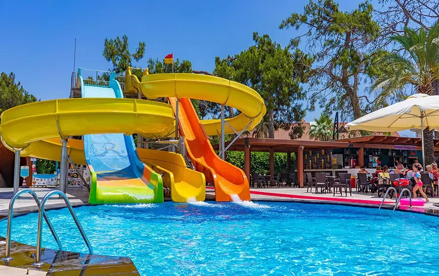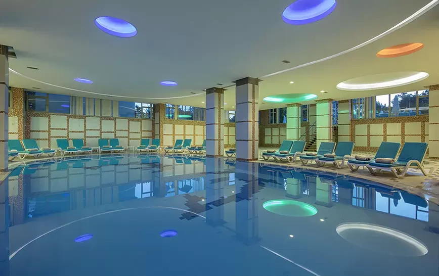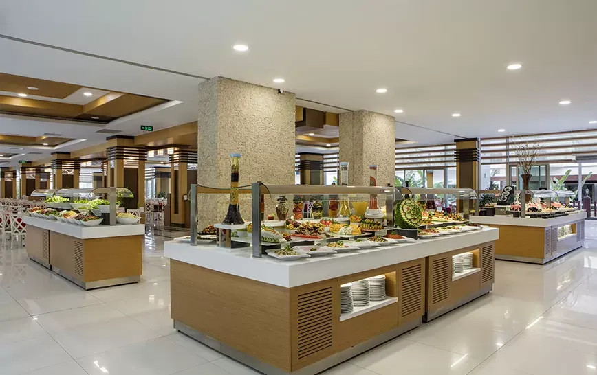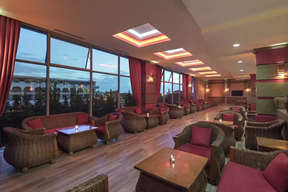 Основен ресторант, 2 открити басейна (500 и 100 кв. м), закрит плувен басейн (136 кв. м), водни пързалки, анимация, театър, интернет кафе (такси), дискотека (безплатно), обмен на валута, магазини, кино, 2 конферентни зала (300м.), 3 бара За децата: детски басейн, детегледачка, анимация, мини клуб Безплатни услуги: сауна, турска баня, гимнастика, фитнес център, плажен волейбол Платени услуги: масаж, боулинг, билярд, водни спортове, център за красота, телефон, факс Плаж: собствен, пясъчен. Чадъри, шезлонги, матраци - безплатно.