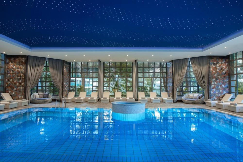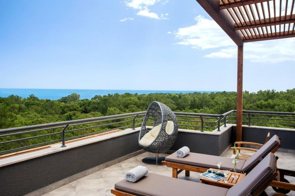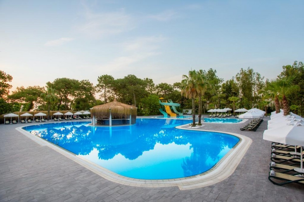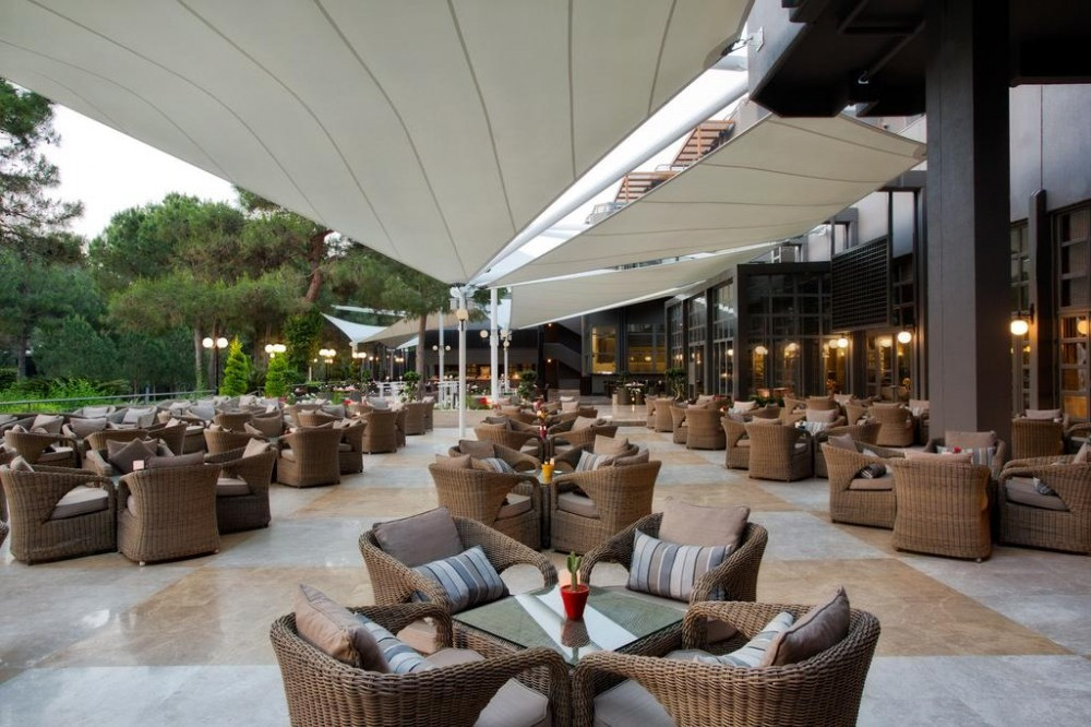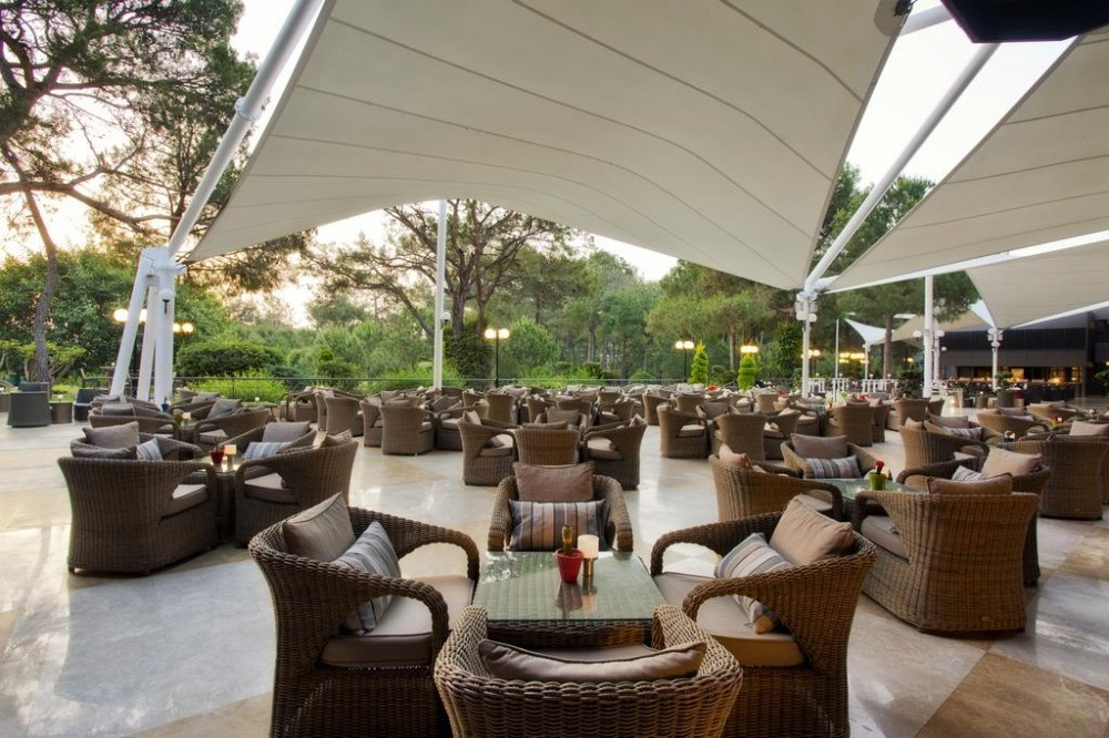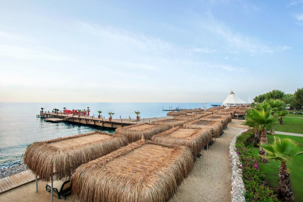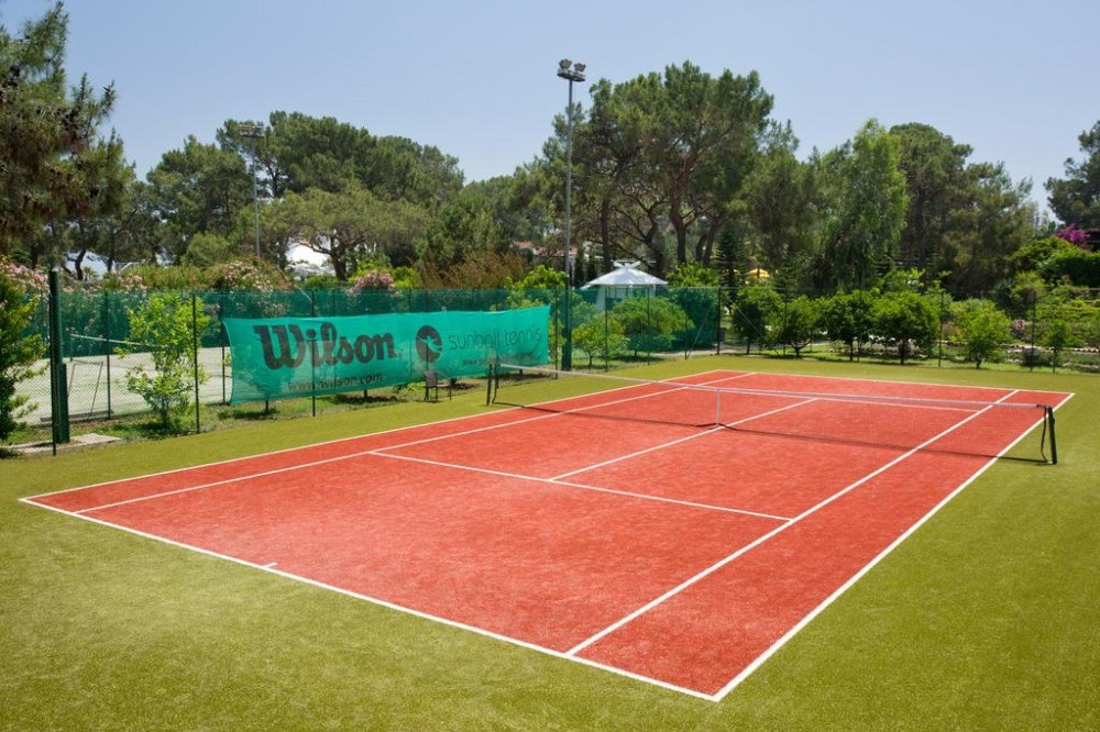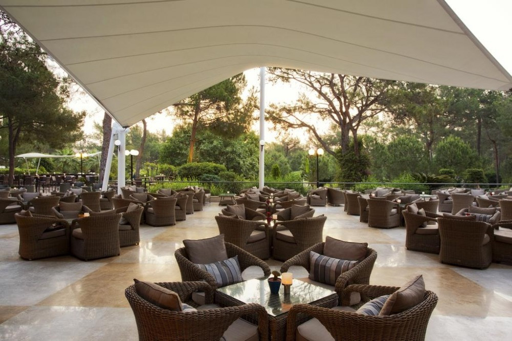 основен ресторант, 6 ресторанта a ла карт (китайски, италиански, рибен, турски, френски, мексикански – безплатно, с предварително записване), диетична храна, 6 бара, 2 открити басейна (един от тях с подгряване), закрит басейн (с подгряване само през зимата) 3 водни пързалки,Спа-център, лекарски кабинет, фризьор, пералня, магазини, 8 конферентни зали (от 10 до 800 места). За децата: детски басейн, детска площадка, мини-клуб (4–12 г.), детегледачка (платено). Безплатни услуги: турска баня, сауна, фитнес зала, аеробика, плажен волейбол, баскетбол, тенис на маса, мини-голф, мини-фитбол, дартс, билярд, уиндсърфинг (с лиценз), катамаран (с лиценз), 6 тенис корта, анимационна програма, жива музика, дискотека, интернет-кафе, безжичен интернет (в лоби) Платени услуги: масаж, наем на тенис ракети и топки, уроци по тенис, осветление на тенис кортовете, моторни водни спортове, бизнес-център Плаж: собствен, пясък/чакъл. Бар на плажа. Чадъри, шезлонги, матраци – безплатно.Плажни хавлии: безплатно. На басейна: чадъри, шезлонги, матраци – безплатно.