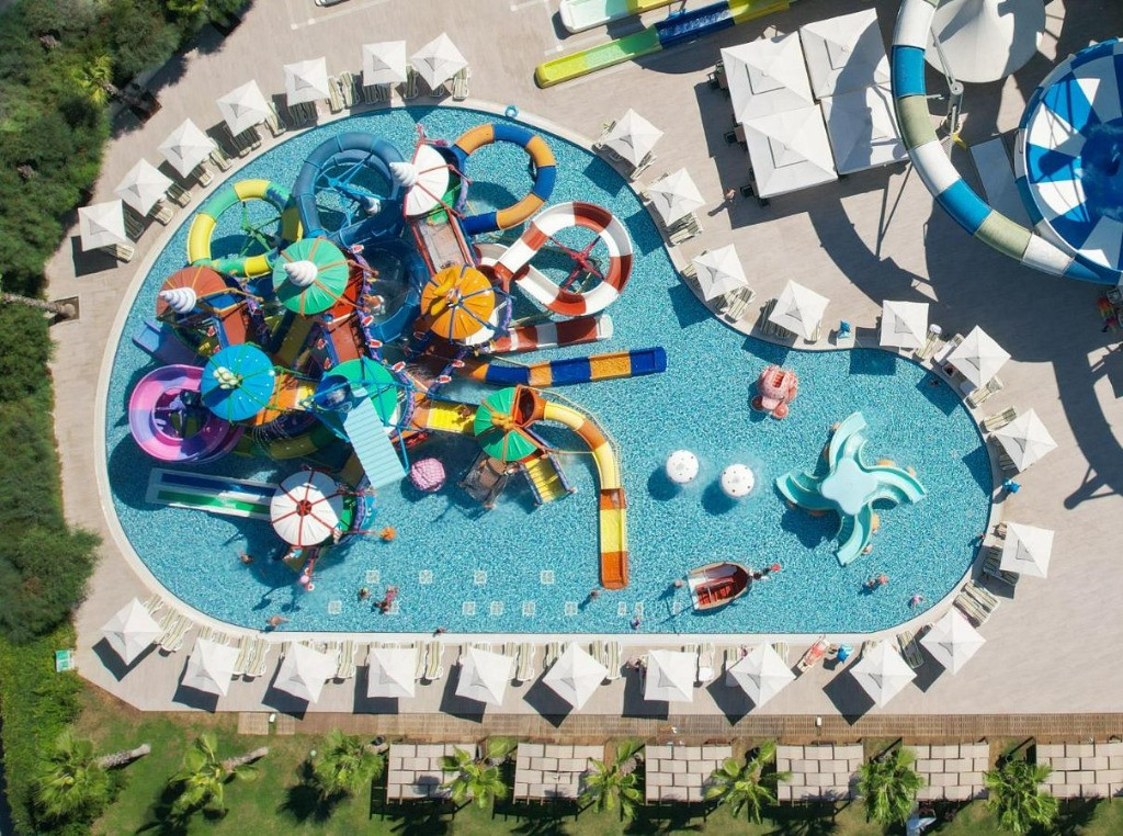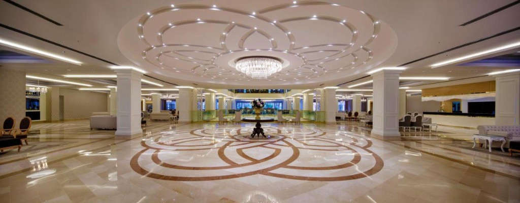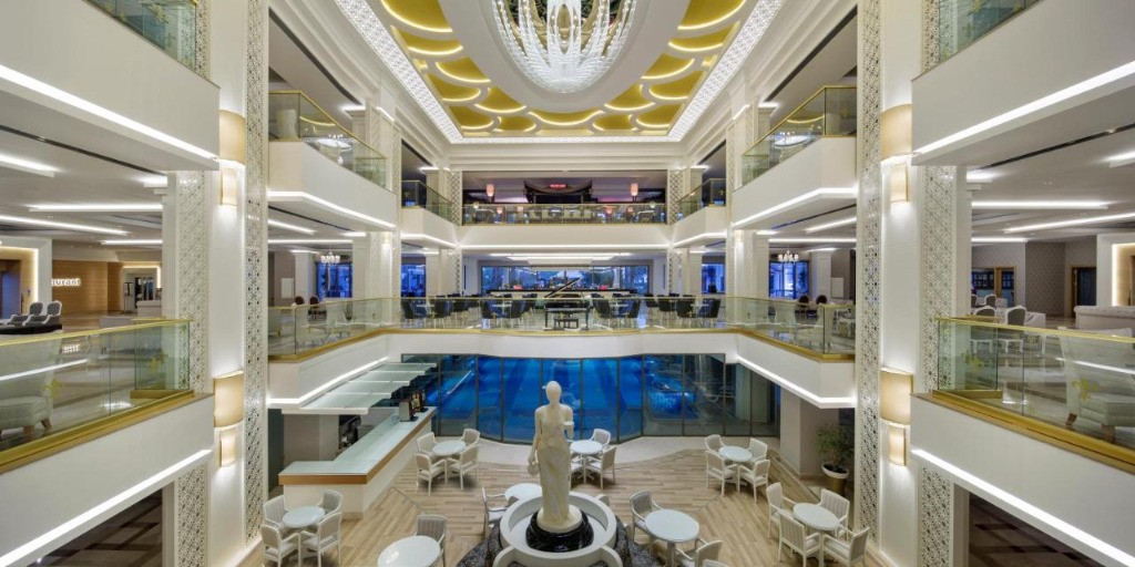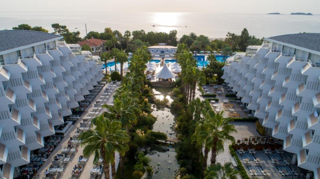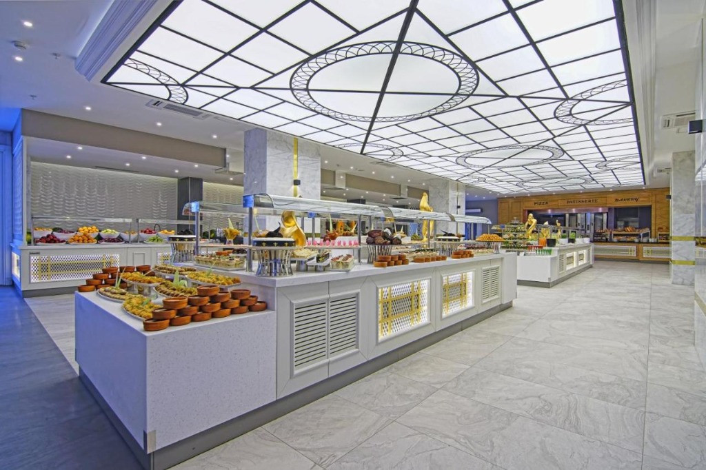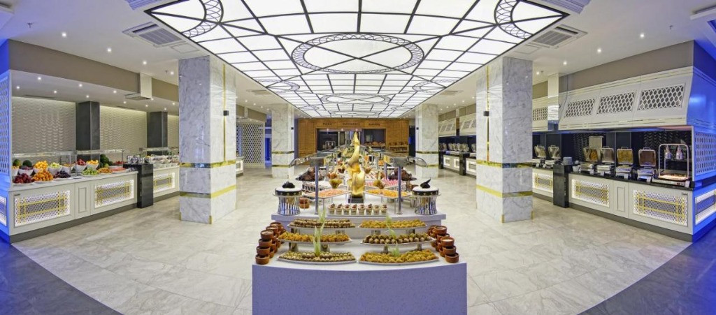 Основен ресторант,3 а ла карт ресторанта, лоби бар, бар на басейна,бар на плажа, 2 открити и един закрит басейн, аквапарк, 3 тенис корта, амфитеатър, търговски център, конферентна зала, Спа-център, паркинг. Безплатни услуги: Сауна, турска баня, фитнес център, дартс, мини-футбол, плажен волейбол, тенис на маса, баскетбол, дискотека. Платени услуги:Джакузи, солариум, масаж, наем на тенис оборудване, осветление за тенис корт, билярд, гмуркане, интернет-кафе, зала за игра. Плаж:Собствен, пясъчно-чакълест,кей, чадъри и шезлонги на плажа и басейна- безплатно.