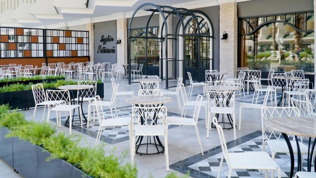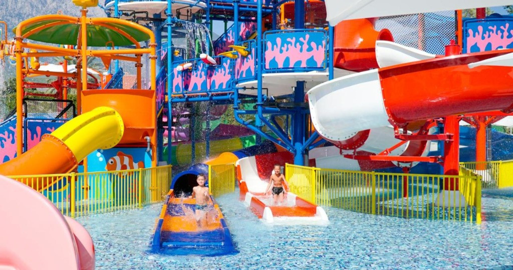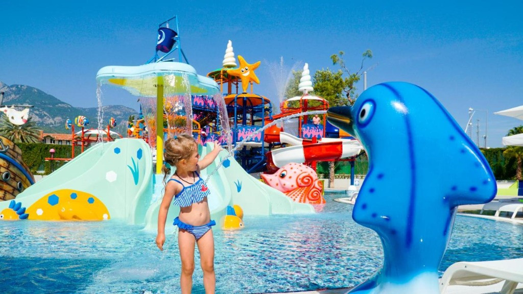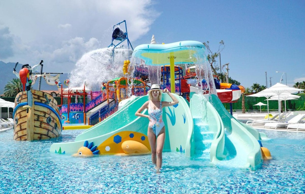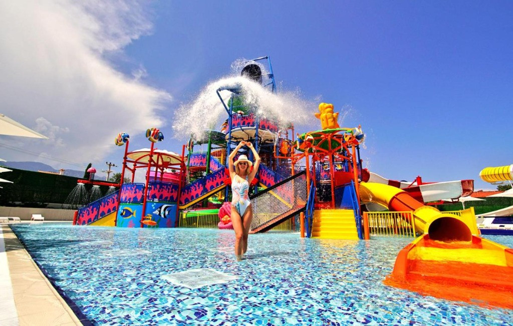 Основен ресторант,3 а ла карт ресторанта, лоби бар, бар на басейна,бар на плажа, 2 открити и един закрит басейн, аквапарк, 3 тенис корта, амфитеатър, търговски център, конферентна зала, Спа-център, паркинг. Безплатни услуги: Сауна, турска баня, фитнес център, дартс, мини-футбол, плажен волейбол, тенис на маса, баскетбол, дискотека. Платени услуги:Джакузи, солариум, масаж, наем на тенис оборудване, осветление за тенис корт, билярд, гмуркане, интернет-кафе, зала за игра. Плаж:Собствен, пясъчно-чакълест,кей, чадъри и шезлонги на плажа и басейна- безплатно.