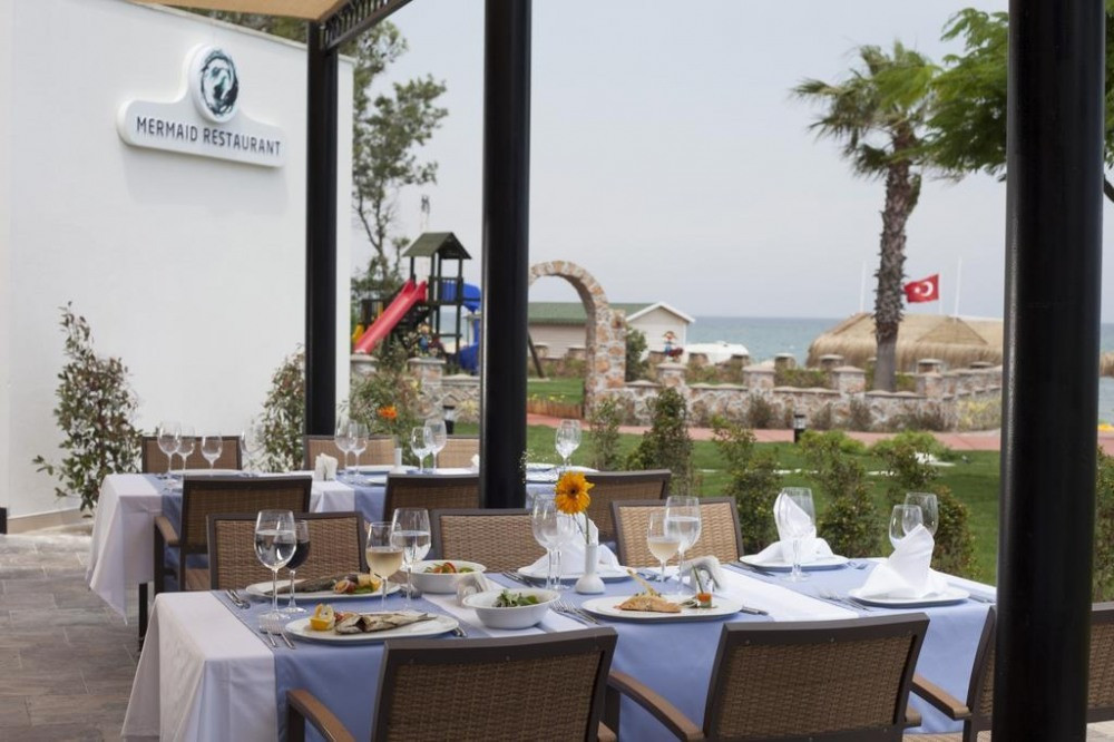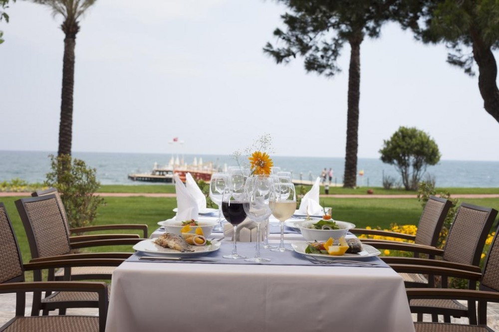 Основен ресторант, 4 а-ла-карт ресторанта(с предварителна резервация), 4 бара, 2 конферентни зали, 1 открит басейн, 1 закрит басейн, 3 водни пързалки, 2 тенис корта, център за таласотерапия, салон за красота, СПА център За децата: мини клуб (4-12 г.), детегледачка (доп.заплащане), детска площадка. Безплатни услуги: турска баня, фитнес център, анимация, закрит басейн Платени услуги: фризьор, масаж, салон за красота Плаж: Собствен чакълест. Чадъри, шезлонги, матраци и плажни кърпи - безплатни.