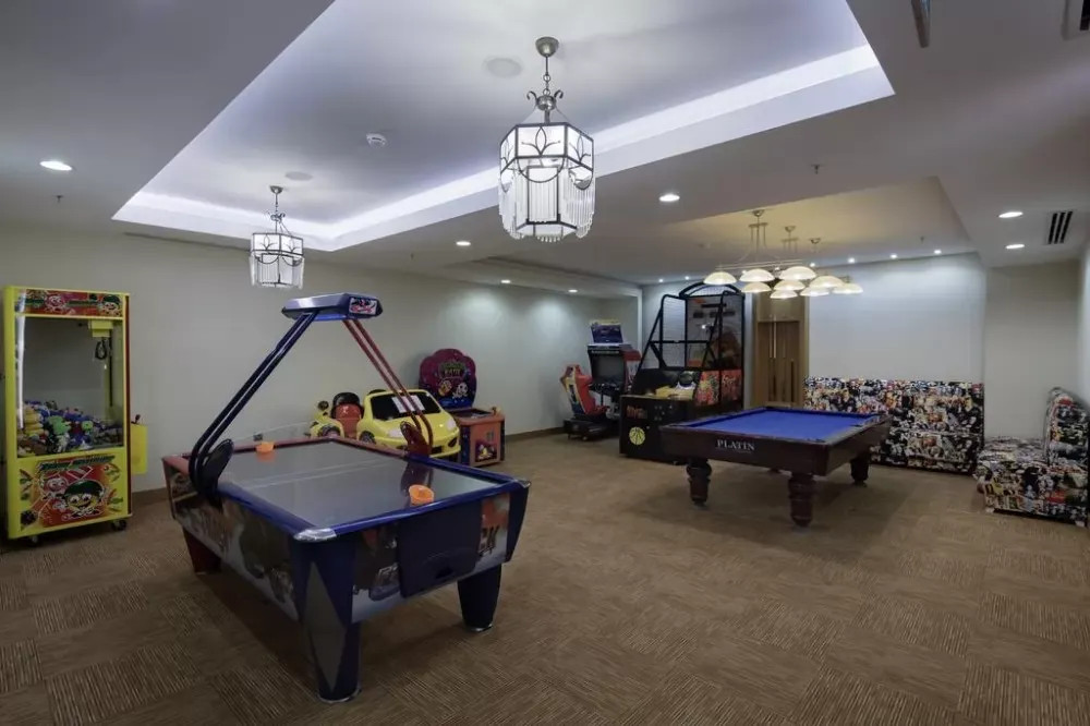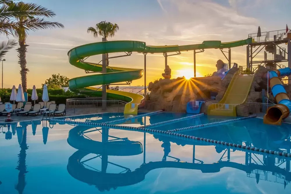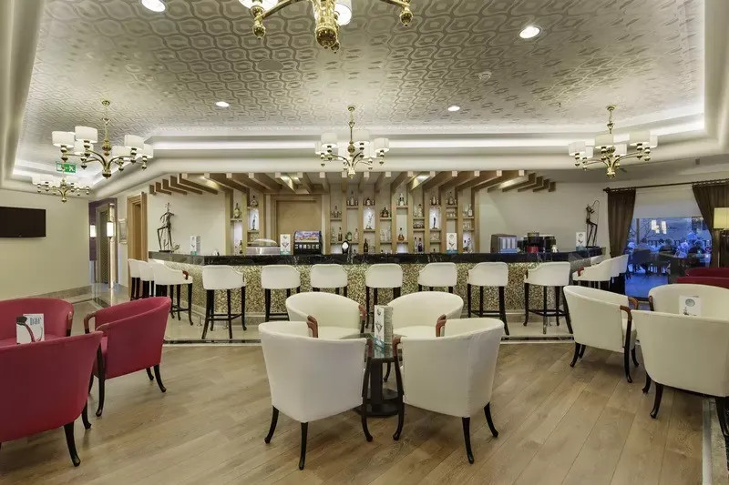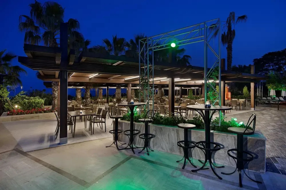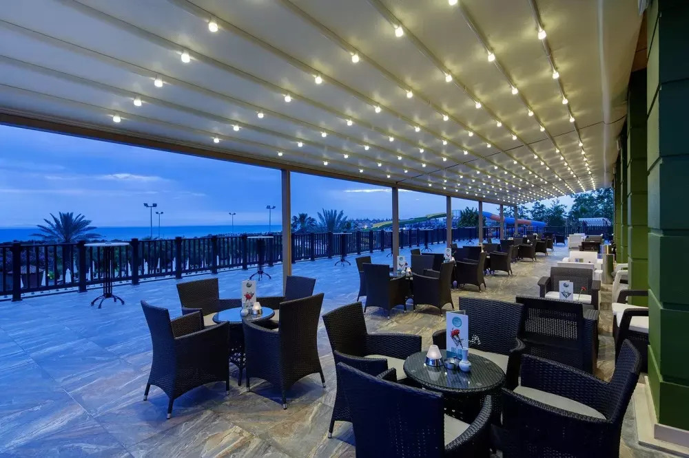 Основен ресторант, 2 а - ла - карт ресторанта, лоби бар, бар на плажа, диско бар, търговски център, доктор, тв салон, закрит басейн, 2 открити басейна, детски басейн, 4 водни пързалки, интернет кафе. За децата: детски басейн, детска площадка, мини-клуб (4-12 год.), тийн клуб (7-13г.), детегледачка (платено). Безплатни услуги: турска баня, сауна, парна баня, джакузи, фитнес аеробика, аквааеробика, плажен волейбол, баскетбол, тенис на маса, дартс, мини-голф, боча, баскетбол, анимационна програма, дискотека, интернет в лоби. Платени услуги: масаж, билярд, игрални автомати, уиндсърфинг (с лиценз), интернет кафе, водни спортове, СПА - център.