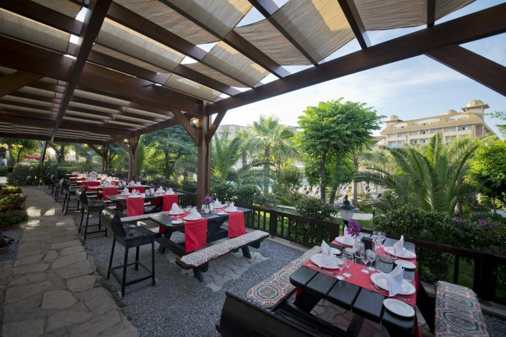 Oсновен ресторант, 6 а-ла-карт ресторанта (турски, средиземноморски, италиански, барбекю,азиатски – съгласно концепцията на хотела),6 бара, 3 открити басейна, 1 детски открит басейн, 1 закрит басейн, 1 детски закрит басейн, 3 водни пързалки, ТВ зала, лекарски кабинет (24 часа, лекар на повикване), фризьорски салон, магазини, пране, обмяна на валута, наем на автомобили, паркинг, конферентна зала, СПА център, фитнес център.