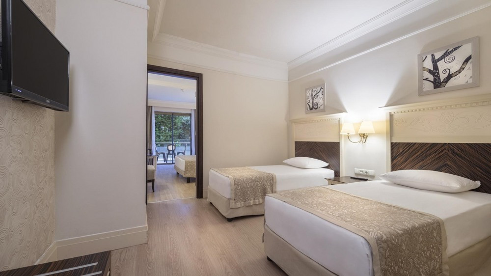 Family room: 48 стаи, 32 м2, 2 отделни спални разделени с преходна врата, баня с душ и тоалетна, балкон, сателитна телевизия, сейф- платено, централен климатик.