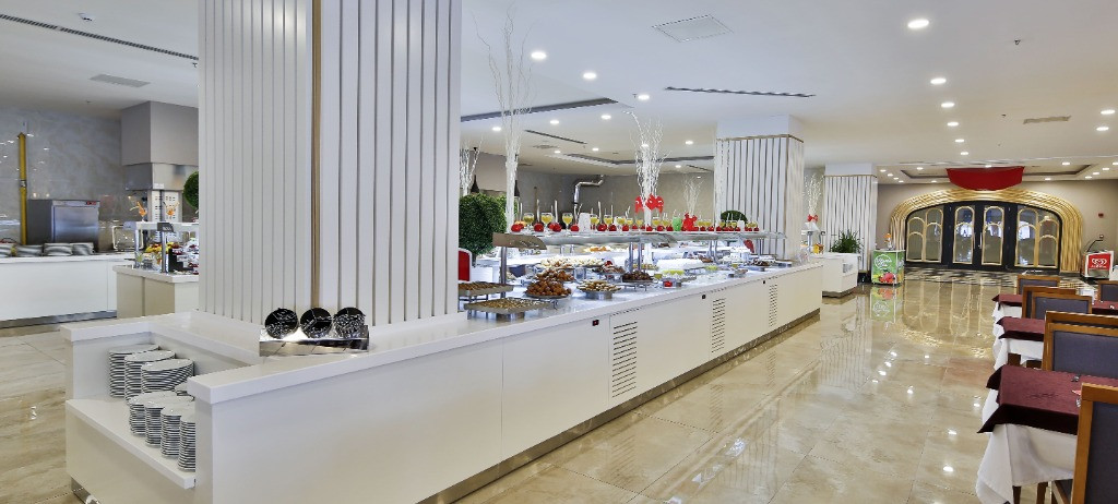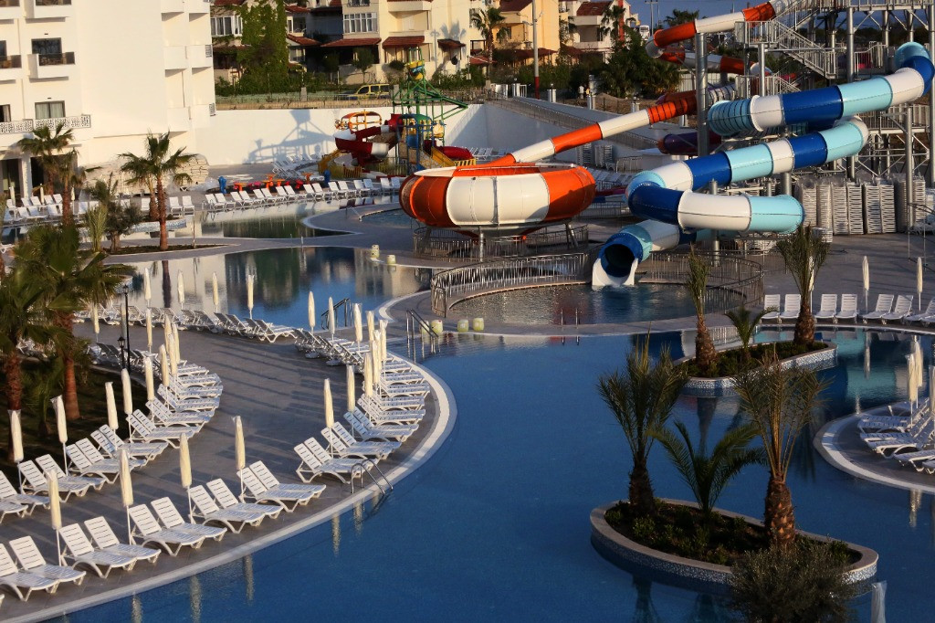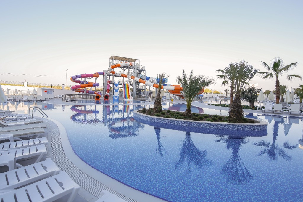 Основен ресторант, 2 а - ла - карт ресторанта (турски и италиански), 2 лоби бара, бар на плажа, бар на басейна, диско бар, търговски център, доктор, тв салон, закрит басейн, открит басейн, детски басейн, 5 водни пързалки, интернет кафе, конферентна зала, фитнес център, тенис на маса, тенис,. За децата: детско меню, детски басейн, детски пързалки, детска площадка, мини-клуб (4-15 год.), детегледачка (платено). Безплатни услуги: турска баня, сауна, парна баня, фитнес, аеробика, аквааеробика, плажен волейбол, баскетбол, тенис на маса, дартс, мини-голф, боча, баскетбол, анимационна програма, безжичен интернет (в лоби). Платени услуги:сейф, масаж, джакузи, игрални зала, интернет кафе, водни спортове, СПА - център.
