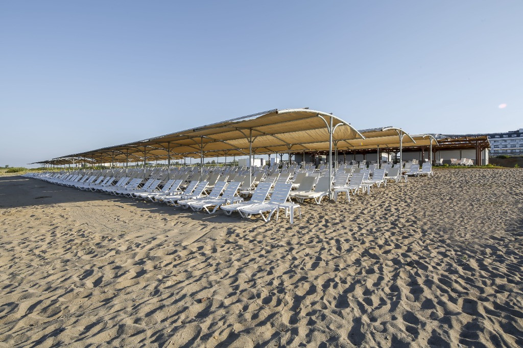 Плаж: Собствен на 50м. от хотела, пясъчно - чакълест. Бар на плажа - безплатно. На басейна и на плажа: чадъри, шезлонги, матраци и плажни кърпи (срещу депозит) - безплатно.