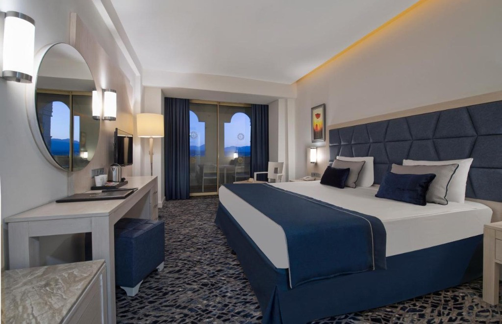 Oсновен ресторант, 5 a la carte ресторанта (китайски, рибен, италиански, турски, мексикански – с предварителна резервация, за едноседмичен престой едно безплатно посещение на един от ресторантите), 7 бара, 3 открити басейна, закрит басейн, релакс басейн, аквапарк (6 водни пързалки), кино, лекарски кабинет, СПА център ( платено), фризьорски салон, търговска алея, пералня (платено), химическо чистене (платено), 3 футболни игрища (65х100, 48х90, 70х95) Безплатно: турска баня, сауна, парна баня, джакузи, фитнес, аеробика, аквааеробика, плажен волейбол, баскетбол, 5 тенис корта с кварцово покритие, тенис на маса, дартс, стрелба с лък, мини-голф, безмоторни водни спортове, уиндсърфинг (с лиценз, 1 час), анимационна програма, музика на живо (в хотел Selin), дискотека (в хотел Selin), безжичен интернет (в лоби). Платени: масаж, боулинг (4 писти, в хотел Selin), билярд, игрални автомати, осветление на тенис кортовете, наем на тенис ракети и топки, уроци по тенис, моторни водни спортове, катамаран (с лиценз), интернет кафе, безжичен интернет.
