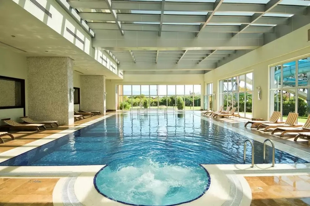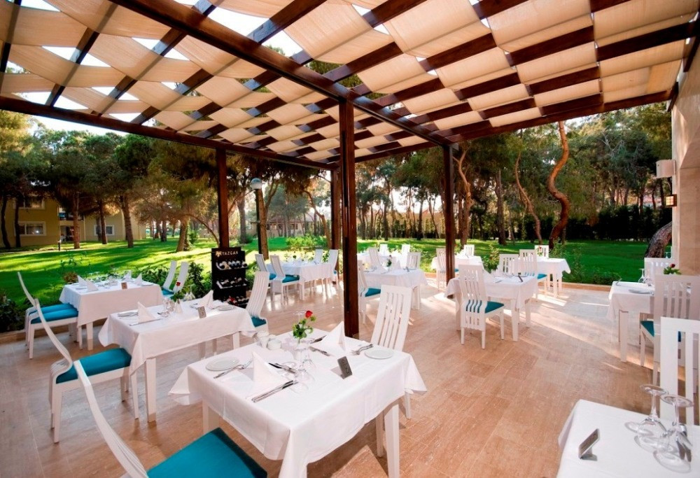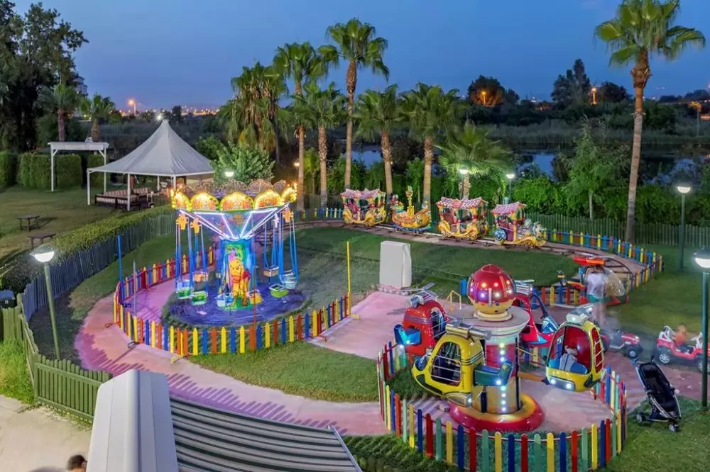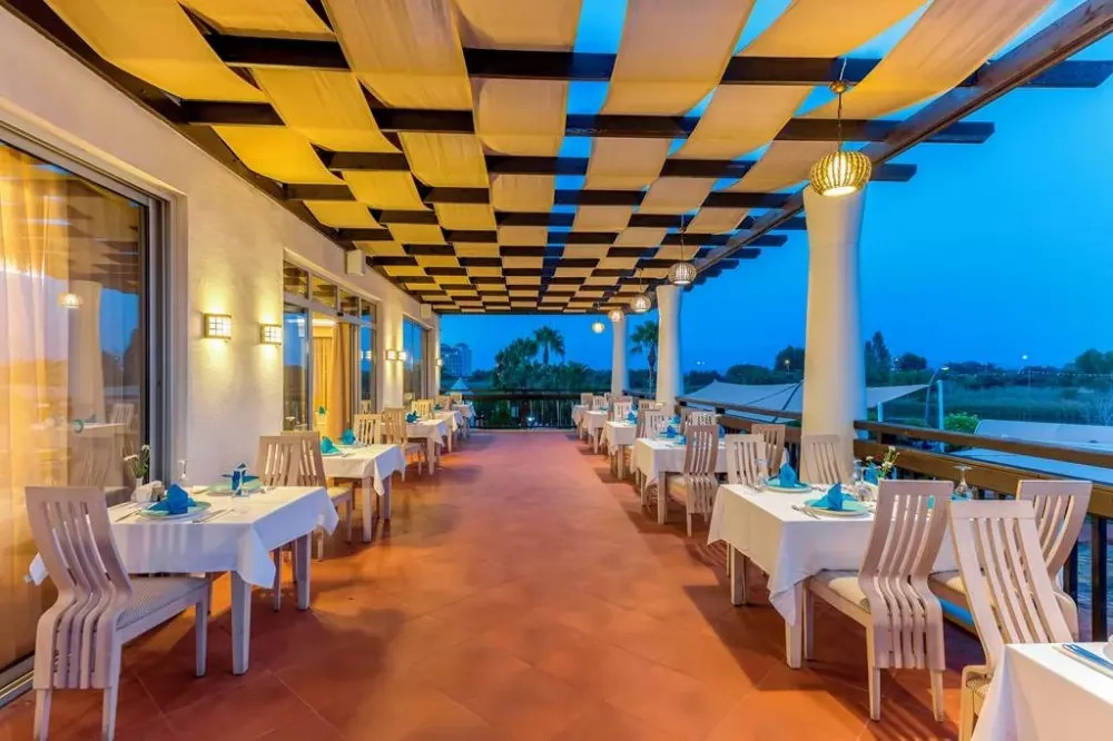 2 основни ресторанта, 4 а-ла-карт ресторанта (с предварителна, платена резервация), 4 бара, сладкарница, 3 открити и 1 закрит басейн, водни пързалки, 2 тенис корта (кварцова настилка), дискотека, амфитеатър, магазини, 3 конферентни зали. За децата: Детски открит басейн с пързалки, закрит басейн, детски ресторант, занимания за деца (0-4г. и 5-12г. възраст), детска площадка на плажа, детско кино, увеселителен парк (платен), мини диско. Безплатни услуги: Сауна, турска баня, парна баня, аеробика, тенис на маса, тенис корт, баскетбол, волейбол, плажен волейбол, мини голф, табла, дартс, анимация, WiFi (в лоби). Платени услуги: Масаж, фризьор, лекар, химическо чистене, рент-а-кар, моторни и безмоторни водни спортове, уроци по тенис, тенис екипировка, билярд, компютърни игри, наем на велосипеди, джет ски (18+), катамаран, уиндсърф, водни ски.
