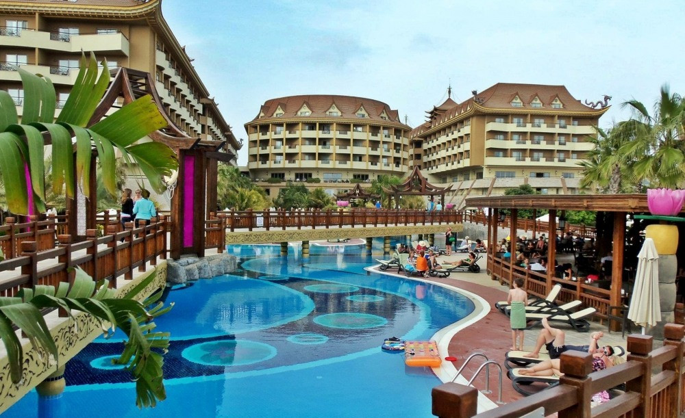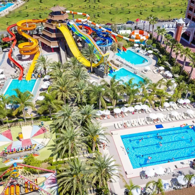 Основен ресторант, 2 а-ла-карт ресторанта (италиански, интернационален, турски, рибен - срещу заплащане), 9 бара, 3 открити басейна,2 детски открити басейна, аквапарк, 1 закрит детски басейн-през зимата. 1 отопляем външен басейн-през зимата, 2 детски открити басейна, аквапарк, магазини, СПА - център, дискотека, анимация, 4 конферентни зали.Wi-fi интернет -съгласно концепцията на хотела.