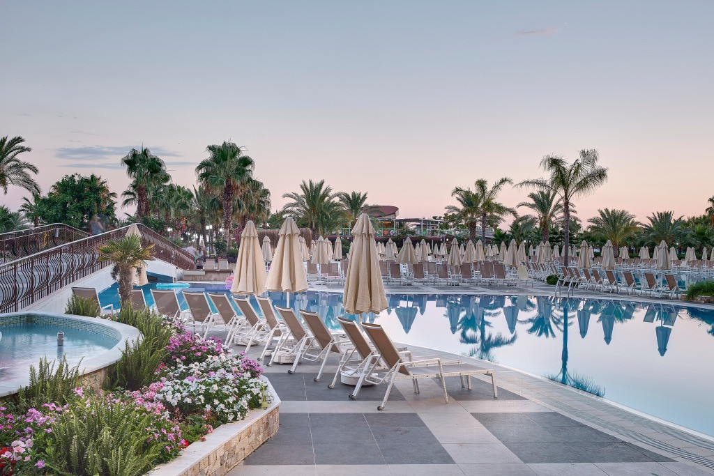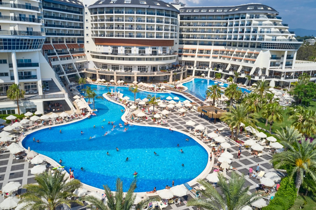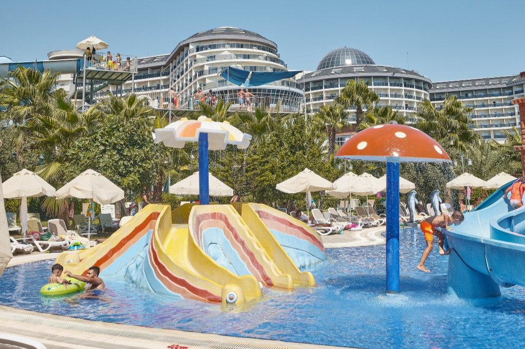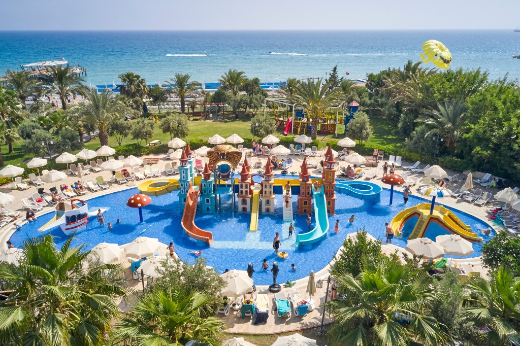 Основен ресторант, ресторанти a ла карт: 5 (османски, азиатски, мексикански, италиански и рибен - с предварителна резервазия - един от ресторантите безплатно за едноседмичен престой), 8 бара, закрит басейн, 3 открити басейн, 6 водни пързалки, Wi Fi - безплатно в лобито, интернет кафе - платено, СПА център, пералня, фризьорски салон, лекар на повикване, магазини. За децата: детски бюфет, детски басейн, детска площадка, детски клуб (4-12г), бавачка - платено. Плаж: Собствен, пясъчно-чакълест плаж. Бар на плажа - безплатно. На плажа и при басейна - чадъри, шезлонги и плажни кърпи - безплатно.