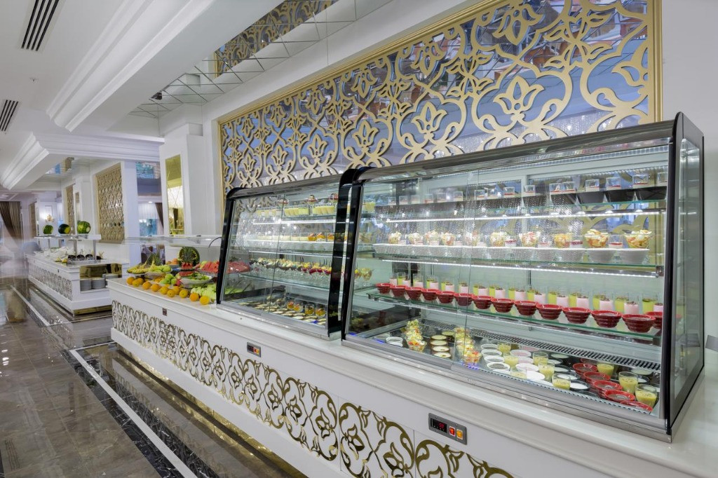 Основен ресторант, 2 а-ла-карт ресторанта (рибен, турски, международна кухня - с предварителна резервация), 4 бара, открит закрит басейн, 3 водни пързалки, СПА център, конферентна зала.