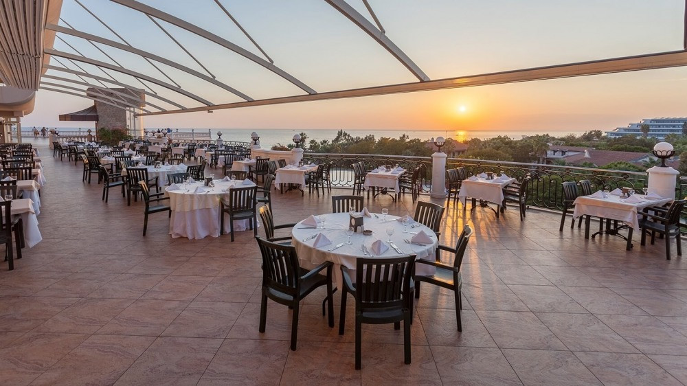 основен ресторант, 12 а-ла-карт ресторанта, 9 бара, 5 басейна, 3 вътрешни басейна, аквапарк с 11 пързалки, дискотека, СПА център, турска баня, сауна(био, руска, класическа), спортен център (футбол, тенис, голф, езда), конферентна зала, амфитеатър, анимация, WI-FI. Безплатни услуги: турска баня, сауна, фрешове на закуска, анимация, тенис на маса, дартс. Платени услуги: тенис корт, телефон и факс, магазини, билярд, моторни водни спортове, За децата: детски басейн, 6 детски пързалки, анимация, мини клуб (4-12г.), мини диско, тийн клуб(13-16г.). Плаж: собствен, пясъчен. Чадъри и шезлонги на плажа и басейна - безплатно.