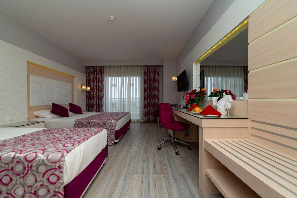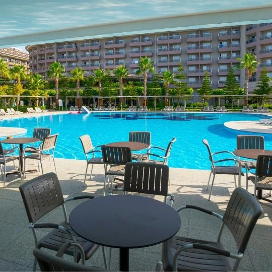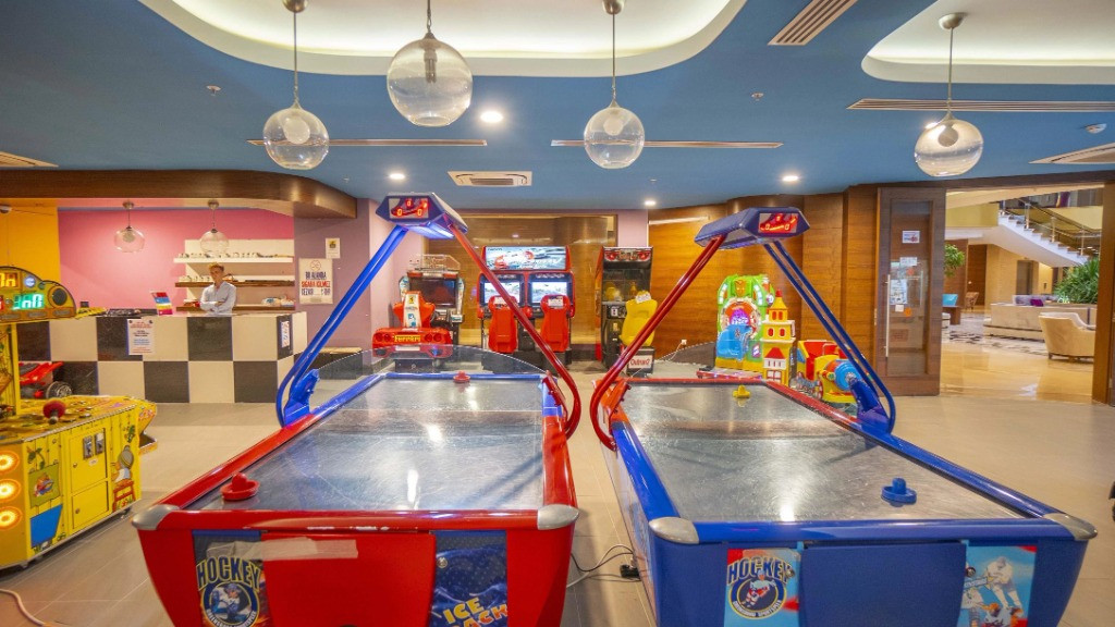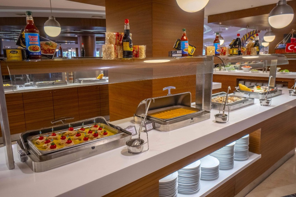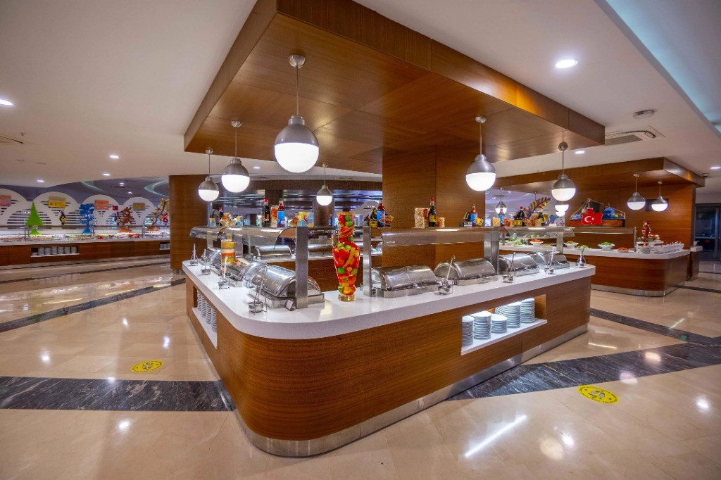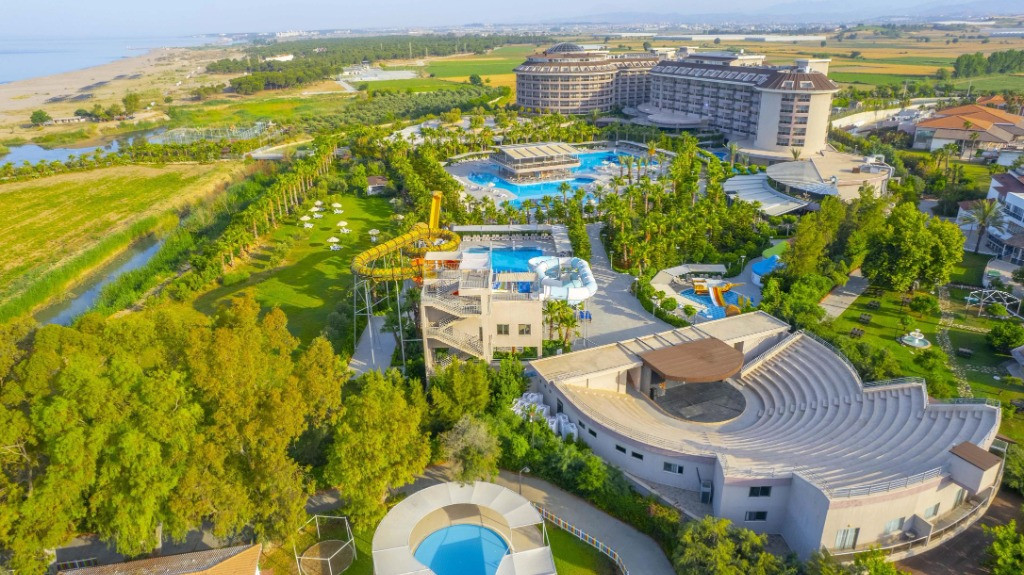 Основен ресторант, 4 а - ла - карт ресторанта (турски, китайски, италиански, рибен, с предварителна резервация, за едноседмичен престой едно безплатно посещение на един ресторант), кафе-сладкарница, 6 бара, 3 открити и 1 закрит басейн, водни пързалки, 2 тенис корта, амфитеатър, дискотека, конферентна зала, мини маркет. За децата: детски басейн, анимация, мини клуб (4-12 г.),тийни клуб (11-15 г.), лунапарк. Безплатни услуги: Сауна, турска баня, фитнес, аеробика, плажен волейбол, тенис на маса, тенис корт, дартс, боча, анимация, Wi-Fi(в лоби). Платени услуги: Масаж, фризьор, лекар, химическо чистене, боулинг, билярд, електронни игри, игрални автомати, рент-а-кар, тенис екипировка, осветление за тенис корт, водни спортове.