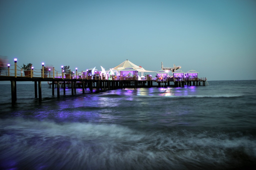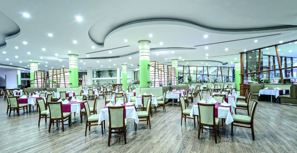 Основен ресторант на блок маса, ресторант - градина, бар на басейна, а ла карт (турски, италиански, рибен, барбекю, китайски, алпийски), бар на басейна, лоби бар, бар в градината, диско бар, рецепция с голямо лоби, СПА център, интернет кафе, магазин за сувенири, маркет, бижутерия, магазина за дрехи, фризьорски салон, магазин за сребро, салон за конференции, закрит басейн, закрит детски басейн, релакс басейн, детски релакс басейн, басейн за анимация, детски открит басейн, аквапарк с 11 водни пързалки. Плаж: Собствен пясъчен. Чадъри, шезлонги и матраци - безплатно. Хавлии се предлагат срещу депозит.