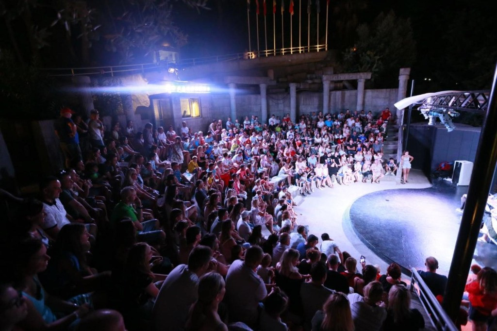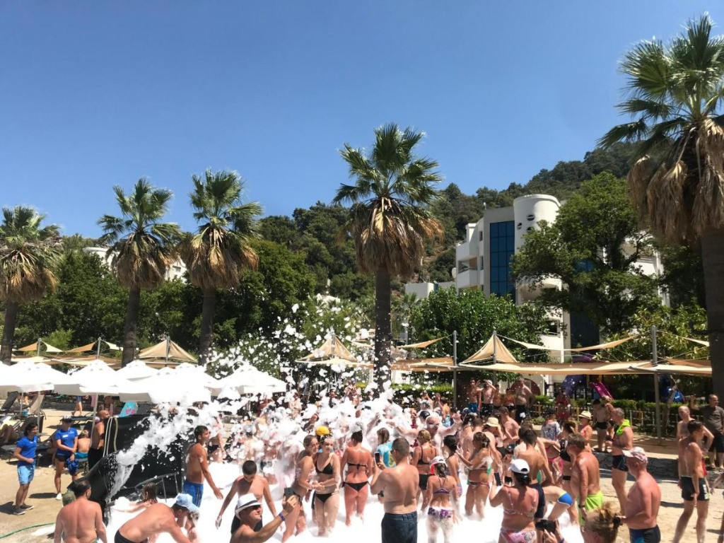 Оновен ресторант, 2 а-ла-карт ресторанта (с предварителна резервация), 6 бара, дискотека, 2 открити басейна, водни пързалки, аквапарк, амфитеатър, магазини, СПА център, конферентна зала, паркинг. За децата: детско меню, детски басейн, водни пързалки, детска площадка, бейби клуб (1- 3 г.), мини клуб (4–12 г.), джуниър клуб, детска количка. Безплатни услуги: СПА център, сауна, турска баня, фитнес, аеробика, мини футбол, тенис на маса, анимационна програма,WI-FI интернет в лоби. Платени услуги: Масаж, пилинг, фризьор, магазини, химическо чистене, лекар, билярд, кану, моторни водни спортове.