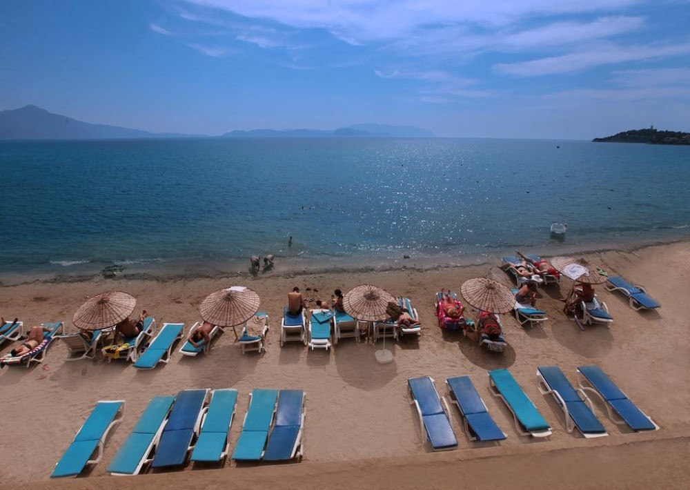 Собствена пясъчна ивица с дължина 25 м. Чадъри и шезлонги на плажа и при басейна – безплатно. Плажни кърпи - безплатно.