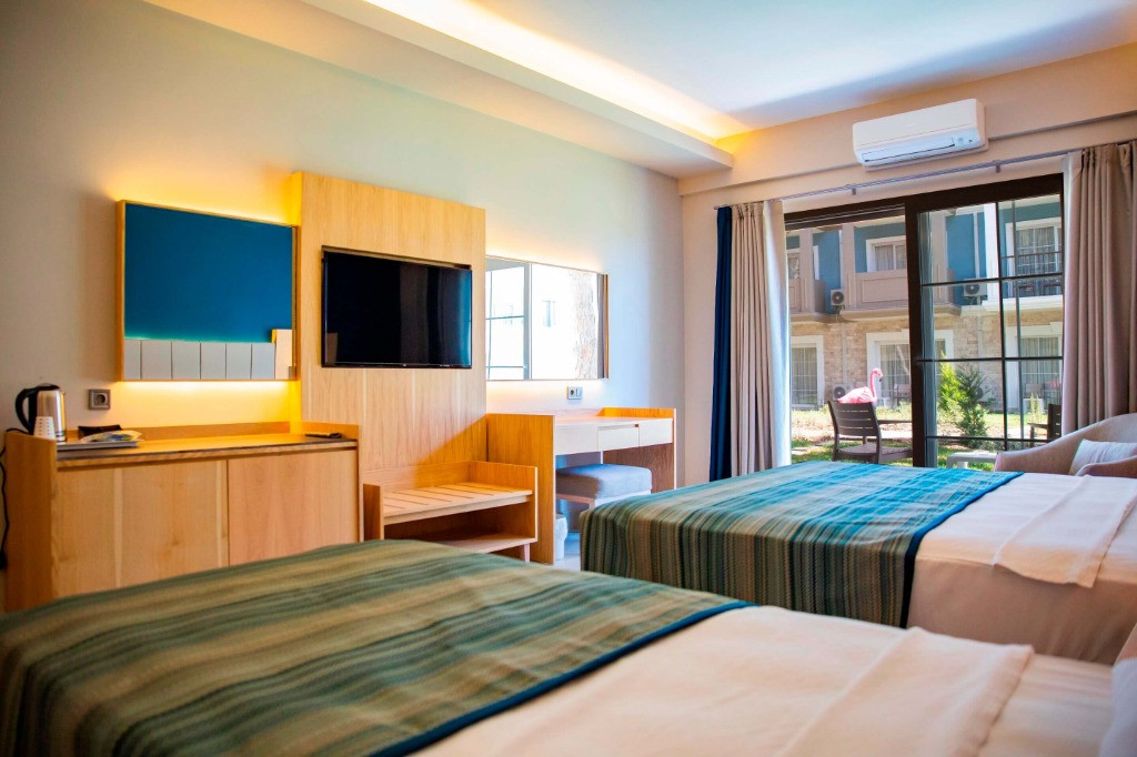 Всички стаи са оборудвани със собствен санитарен възел, индивидуален климатик, сателитна телевизия, телефон, баня с душ, сешоар, минибар, сейф, безжичен интернет, балкон или тераса, керамично подово покритие.