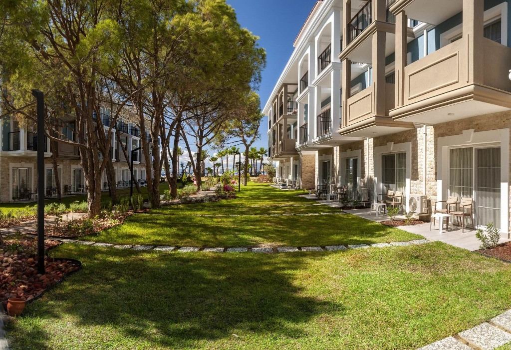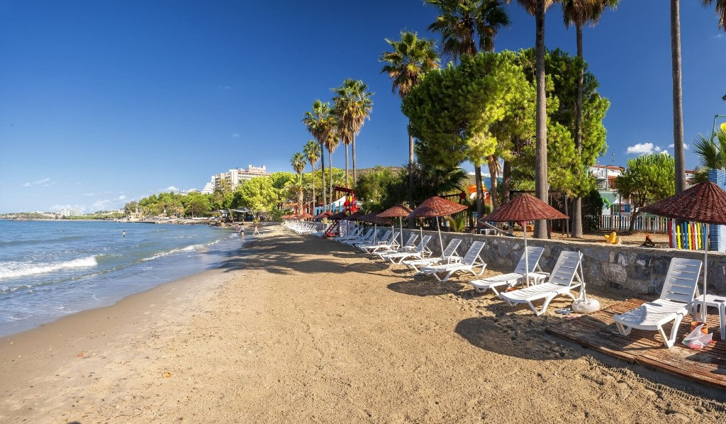 Собствена пясъчна плажна ивица, непосредствено до комплекса. Безплатно ползване на чадъри и шезлонги на плажа и при басейните. Безплатно предоставяне на плажни кърпи.