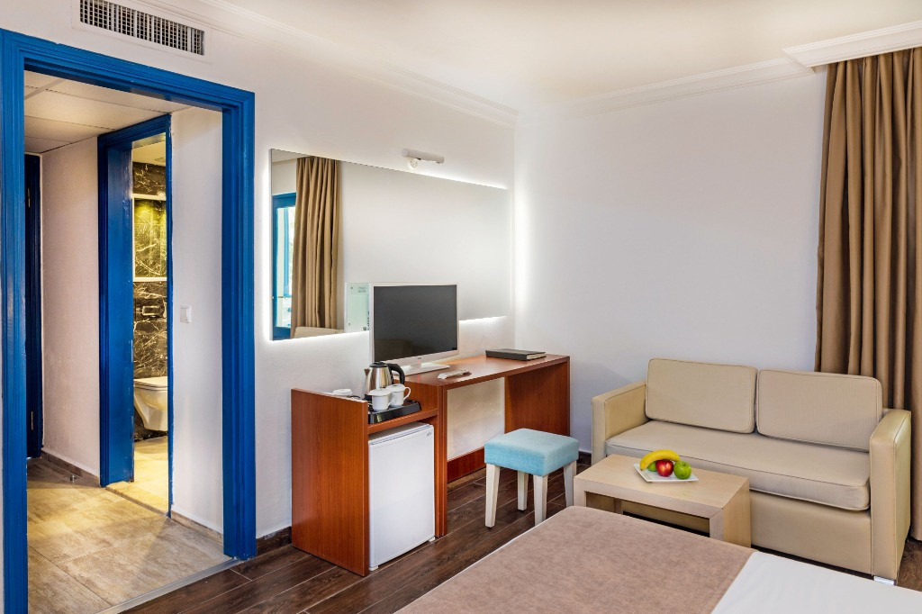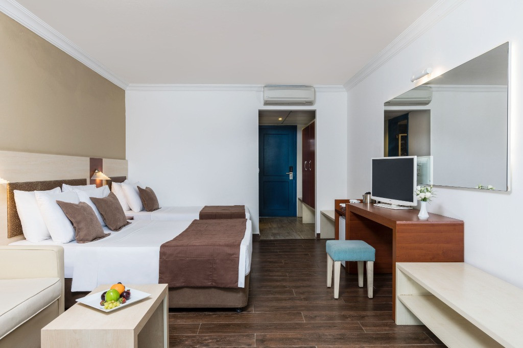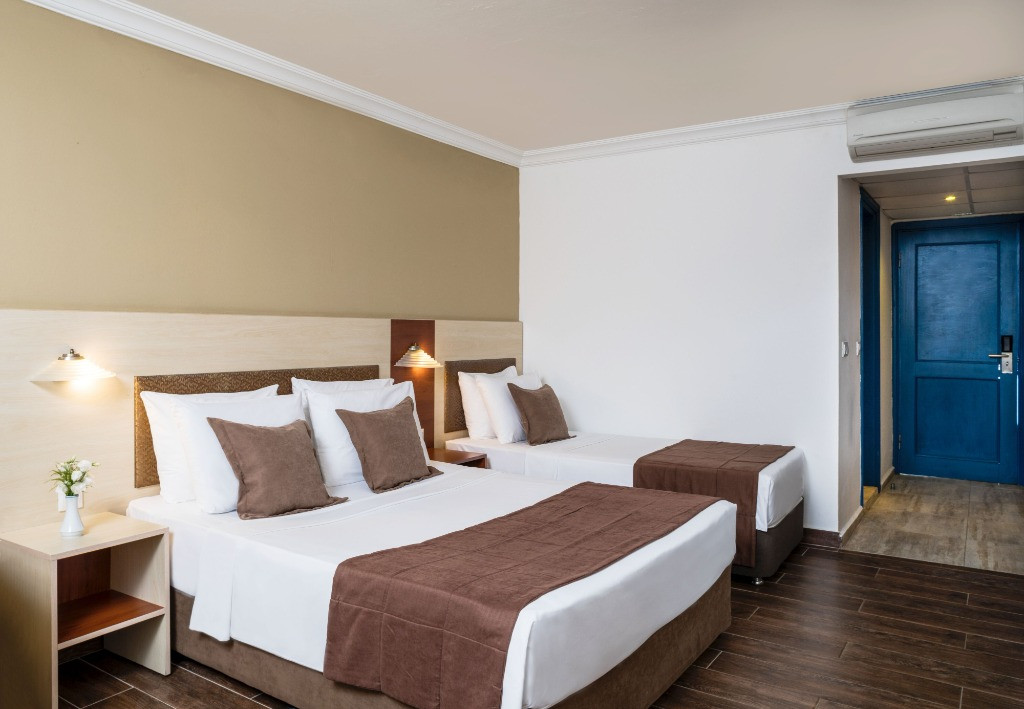 Всички стаи са оборудвани с климатик, телевизор, телефон, баня с душ или вана, сешоар, минибар, сейф. С изключение на промо стаите, всички стаи разполагат с балкон или тераса. Почистване на стаите – всеки ден, смяна на бельото и кърпите – 2 пъти в седмицата.