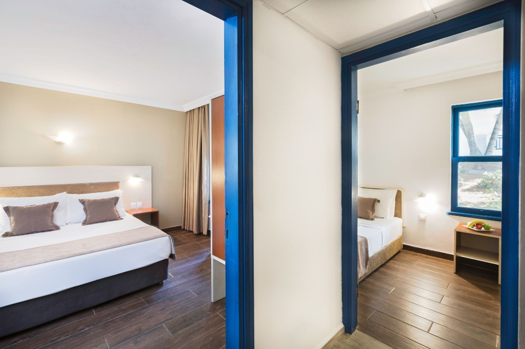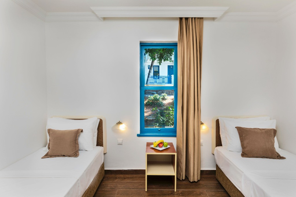 • основен корпус – стандартни стаи и едностайни апартаменти, като всички стаи в основната сграда са с изглед към морето