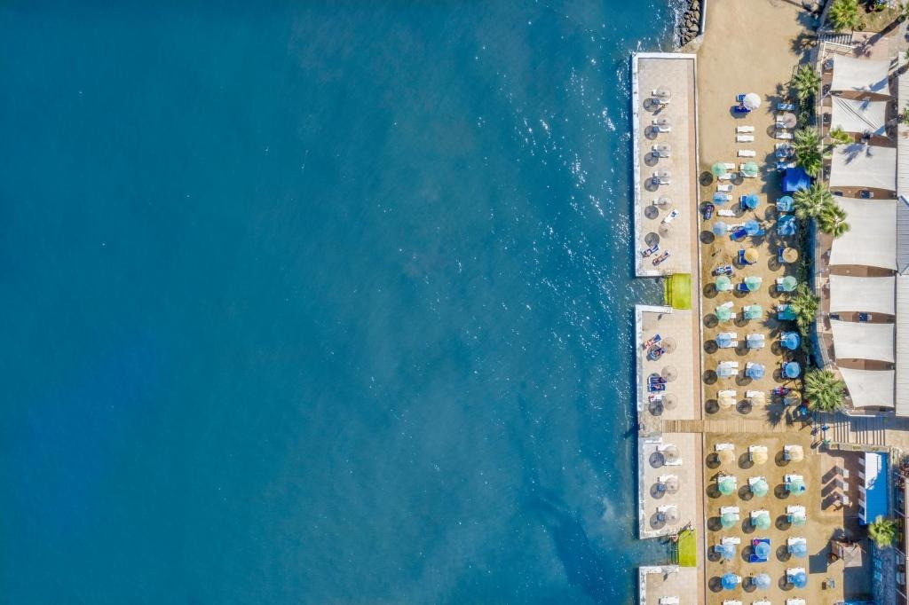 Собствена пясъчна ивица и платформа. Чадъри, шезлонги и матраци на плажа и при басейните – безплатно.