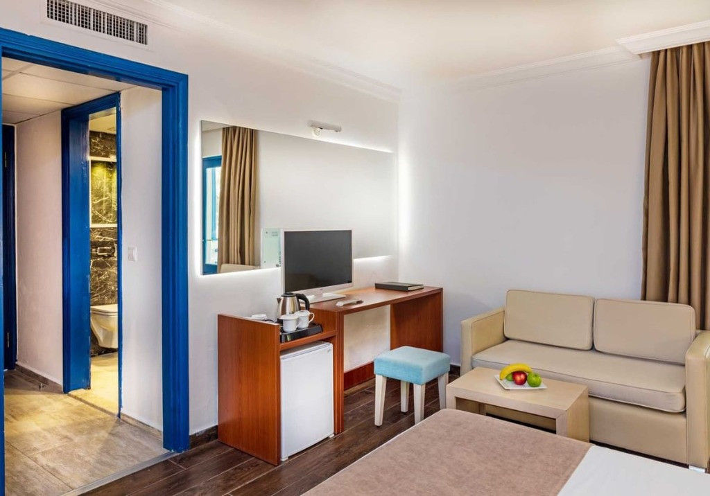 Безплатни услуги: Турска баня, сауна, фитнес, дартс, тенис на маса, 2 тенис корта, плажен волейбол, аеробика, водно колело, кану, безалкохолни напитки и вода в минибара, жива музика, анимация, безжичен интернет (в района на рецепцията).