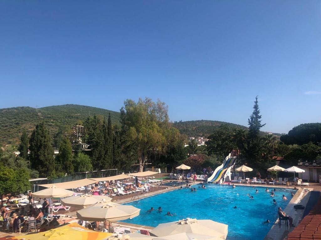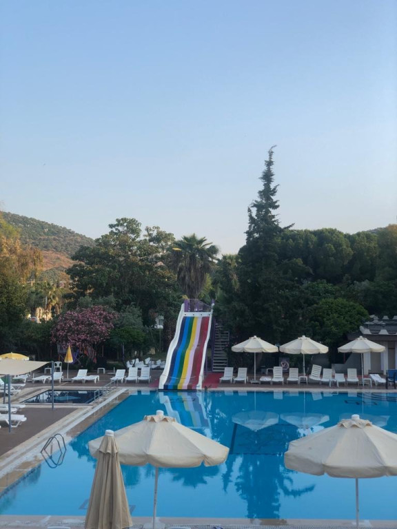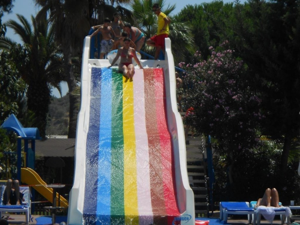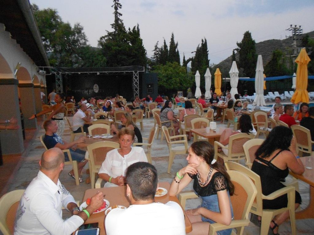 Основен ресторант, 2 бара, открит басейн, водна пързалка, магазини, тв зала, паркинг.