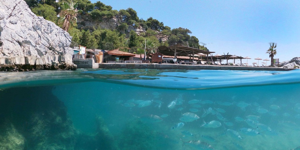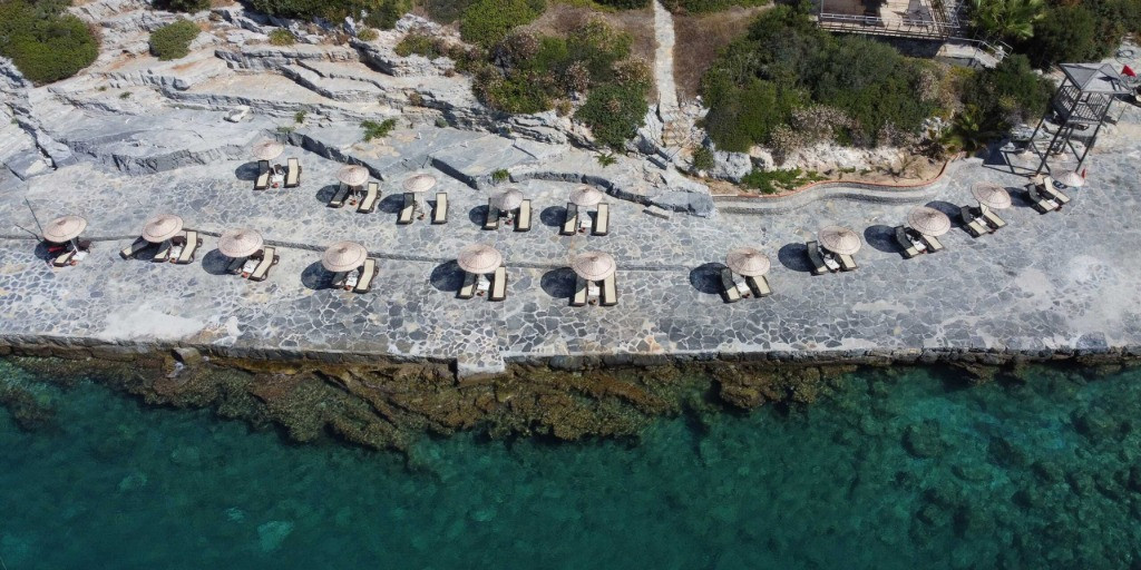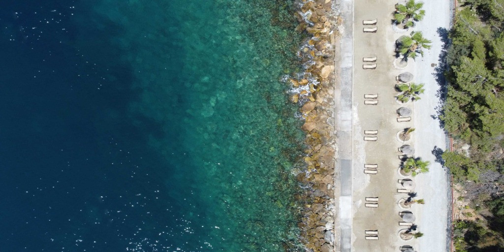 Собствен, пясъчно-чакълест със сертификат "Син флаг" и платформа. Чадъри и шезлонги на плажа и при басейните – безплатно. Плажни кърпи - безплатно.