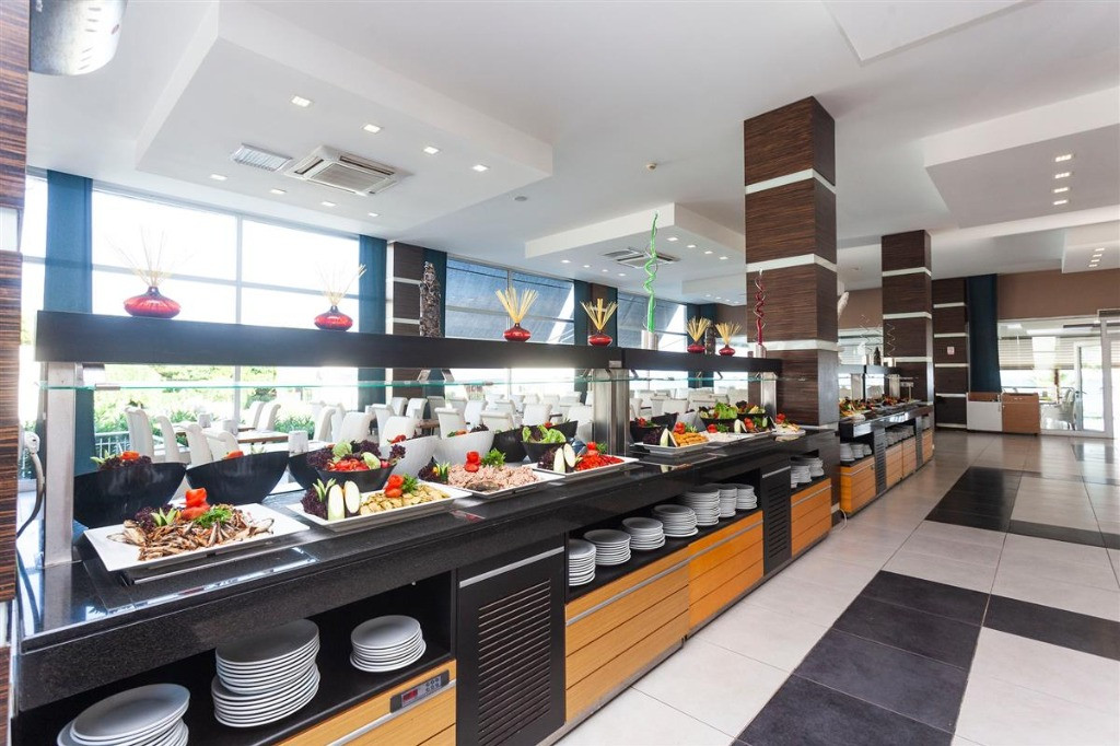 основен ресторант, 3 а-ла-карт ресторанта (рибен, италиански, турски - с предварително записване),4 бара, 3 открити басейна, закрит басейн , 2 водни пързалки, амфитеатър, СПА център, фризьорски салон, магазини, химическо чистене.